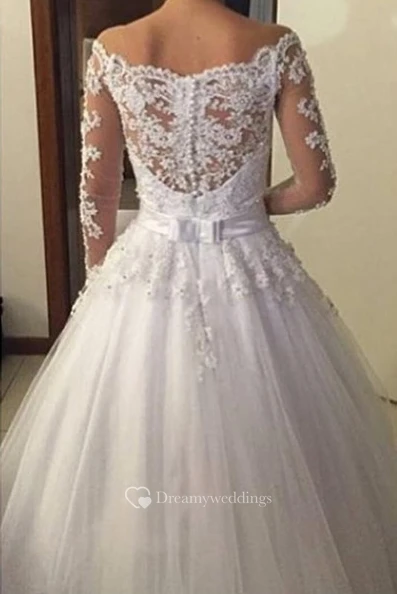 Gorgeous Off-shoulder Long-sleeved Lace Ball Gown Illusion Style