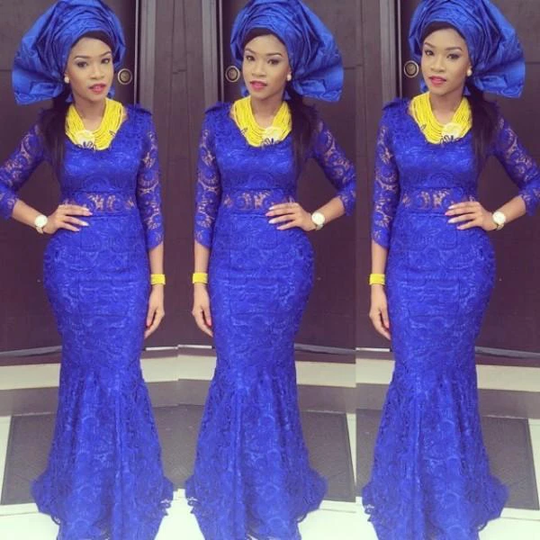 Gorgeous Royal Blue Lace Mermaid Evening Dress Long Sleeve
