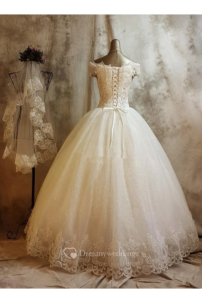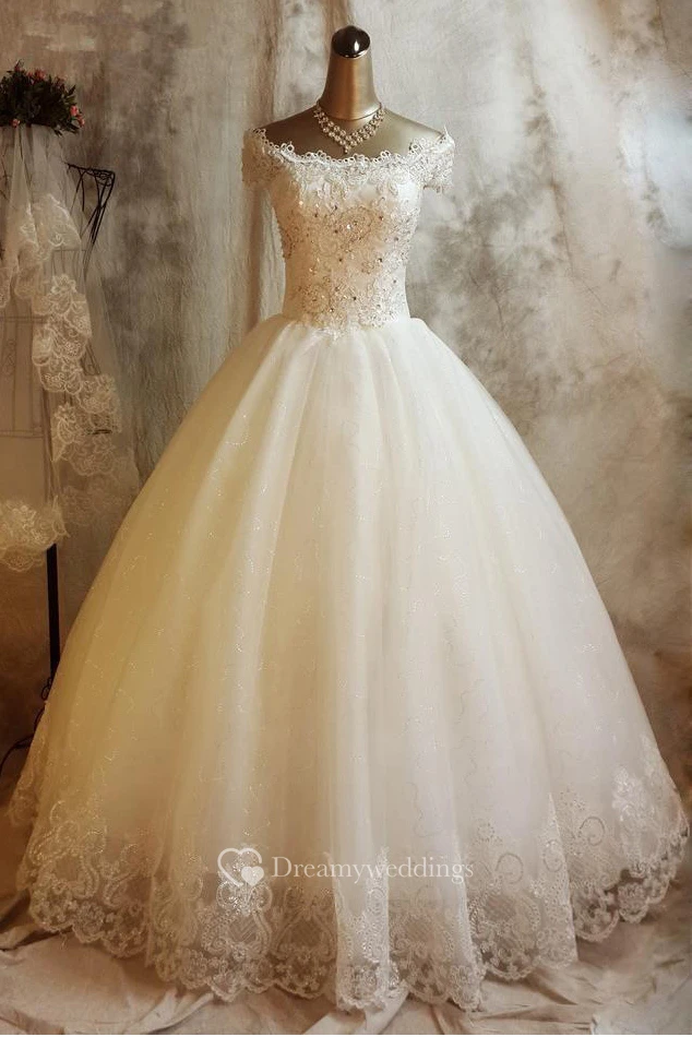 Gorgeous Short Sleeve Lace Wedding Dresses Ball Gown With Appliques