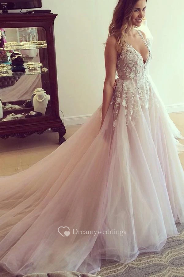 Gorgeous Sleeveless V-Neck Prom Dress Tulle Appliques