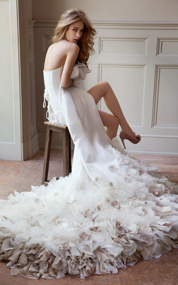Gorgeous Strapless Floral Bodice Organza Dress With Illusion Corset Back