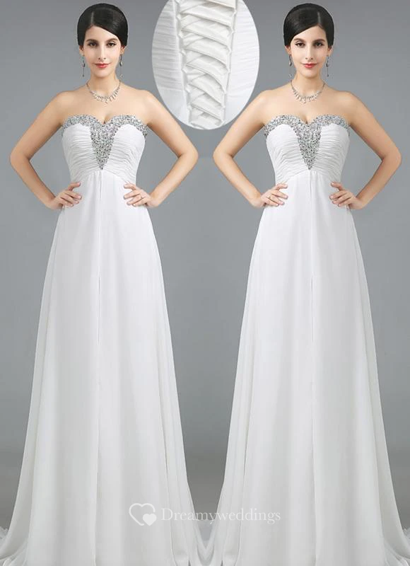 Gorgeous Sweetheart Crystals Prom Dress Long Chiffon Lace-Up