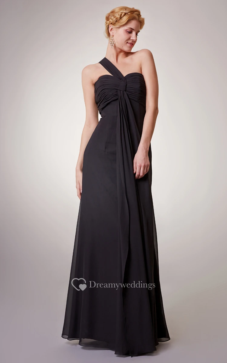 Gossamery One-shoulder Chiffon Dress With Empire Waist