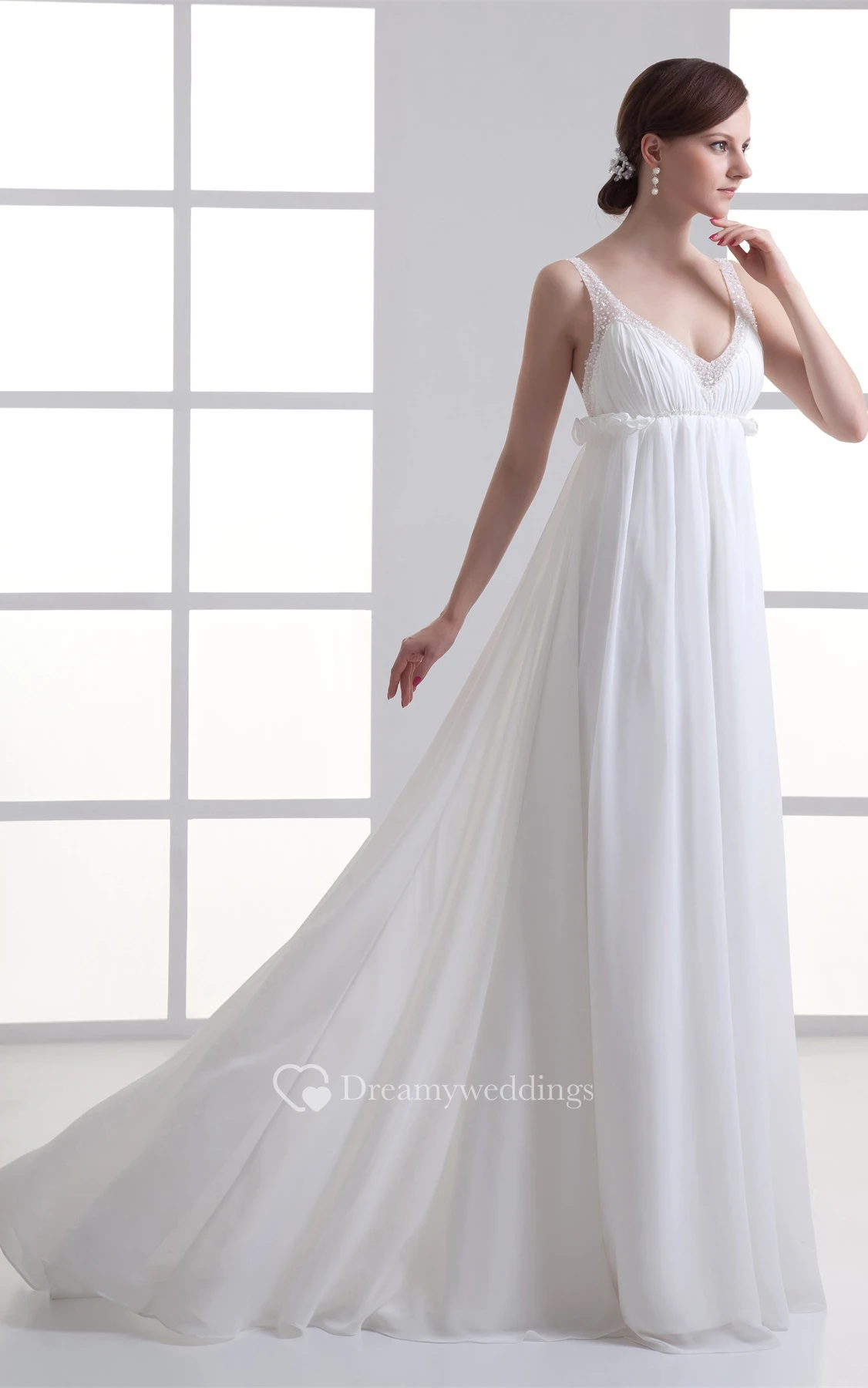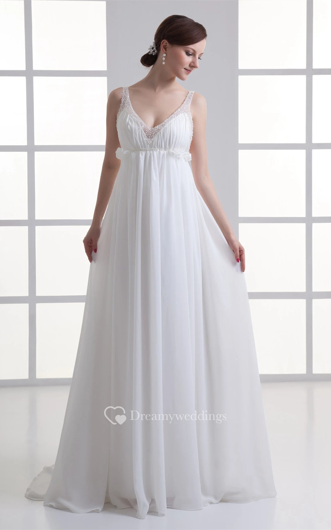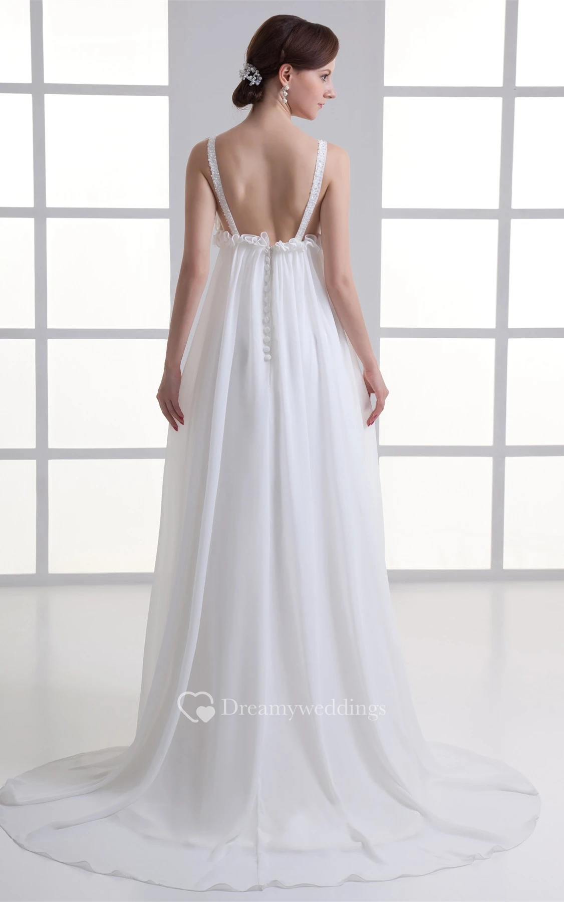 Gossamery Plunged Sleeveless Chiffon Satin a Line Wedding Dresses