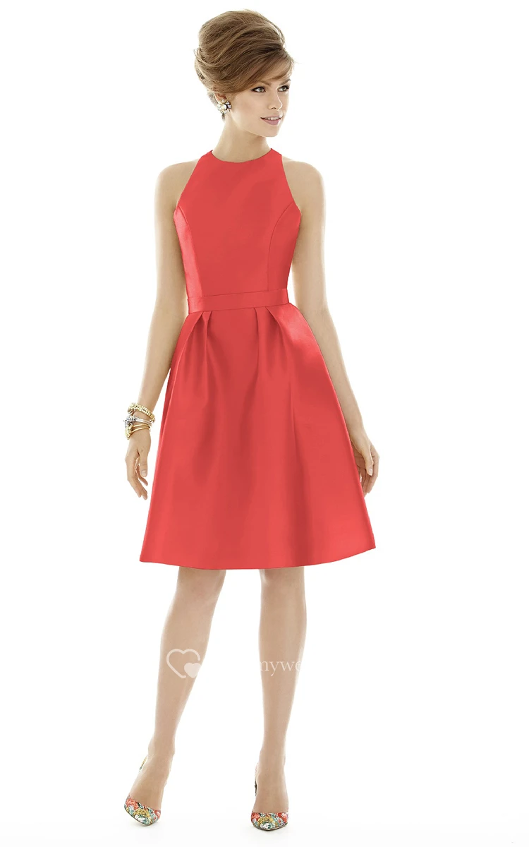 Graceful A-Line Short Sleeveless Satin Dress with Ruching and Belt
