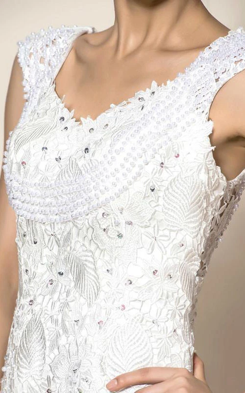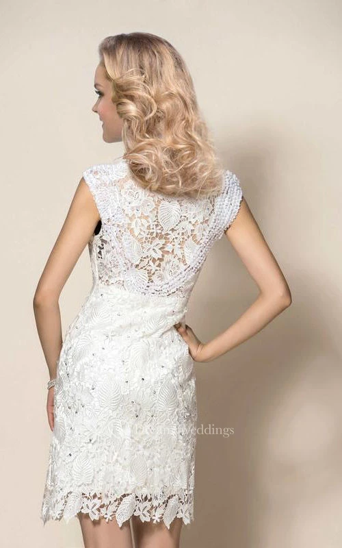 Graceful Lace Straps Pearls Beading Short Cocktail Dress