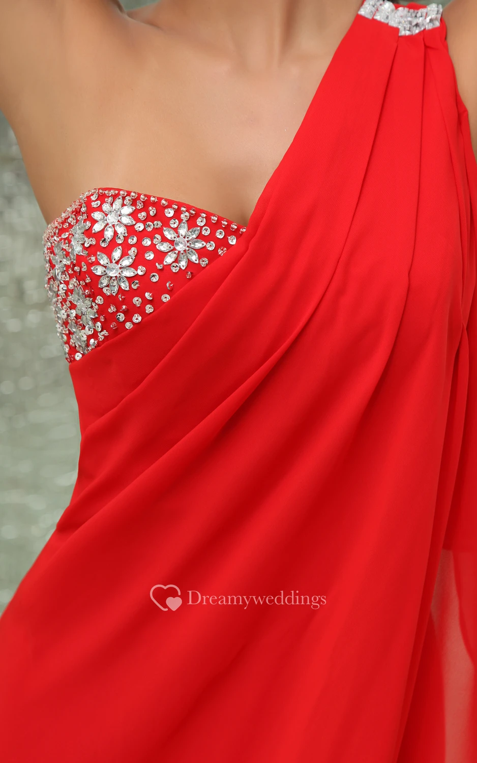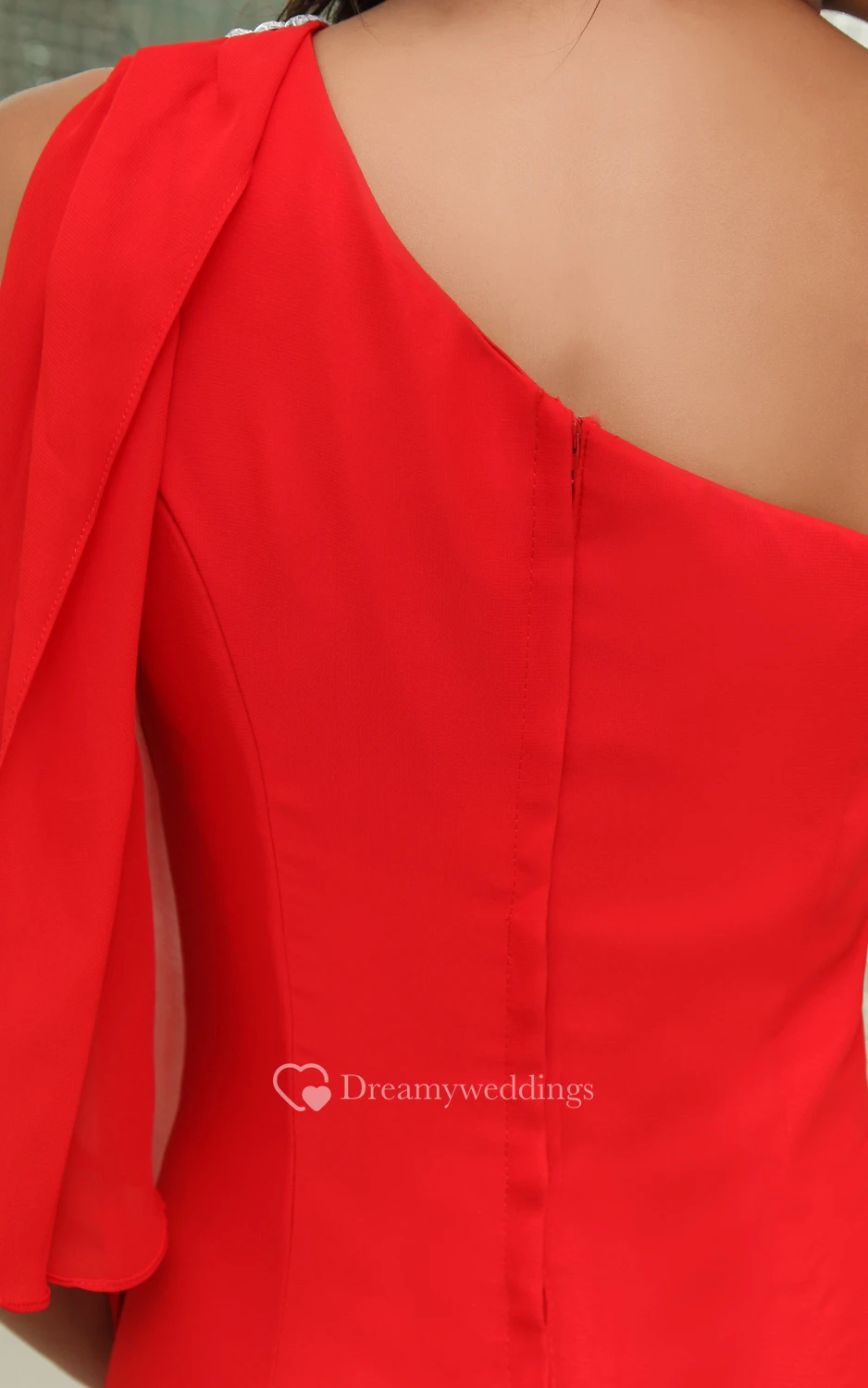 Graceful One-Shoulder A-Line Chiffon Gown With Sequins and Side Drap
