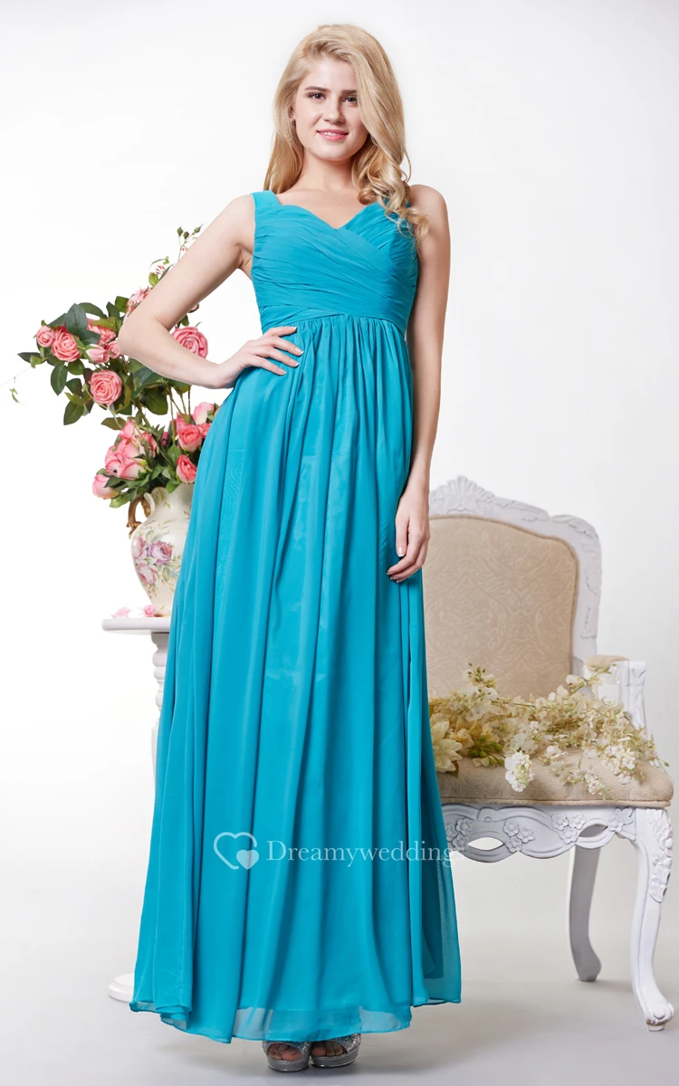 Graceful Ruched V-neck Chiffon A-line Long Dress