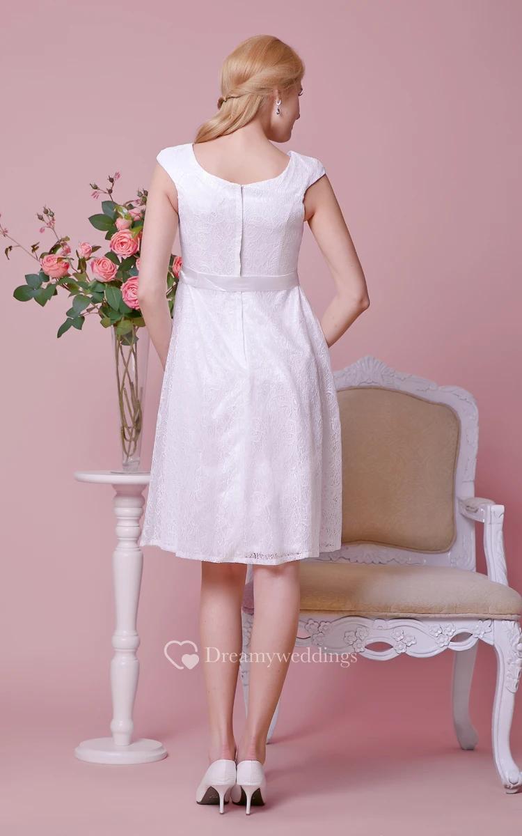 Graceful Scoop Neck Cap-sleeved Knee Length Lace Dress With Satin Bow