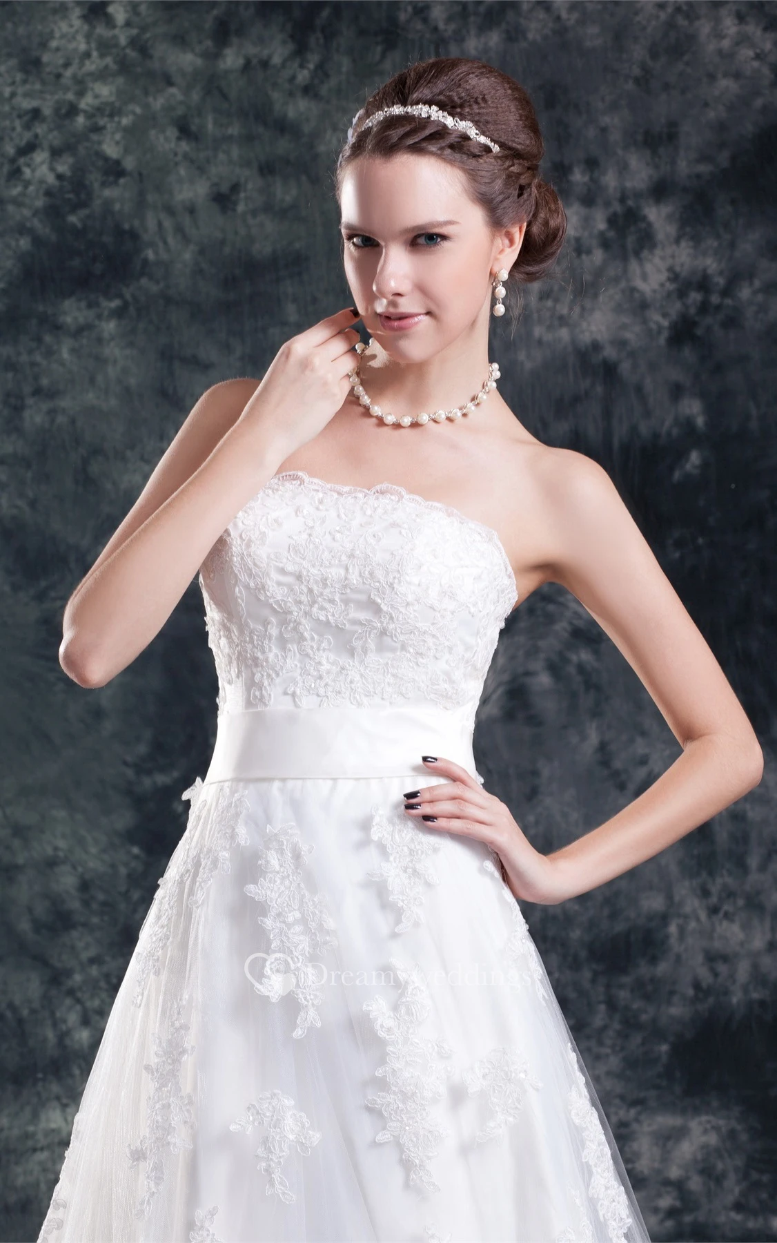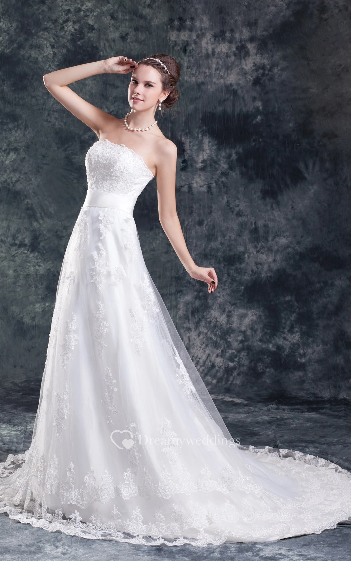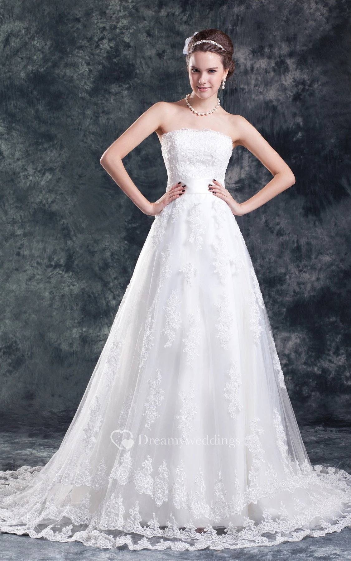 Graceful Strapless a Line Sleeveless Satin Net Wedding Dresses