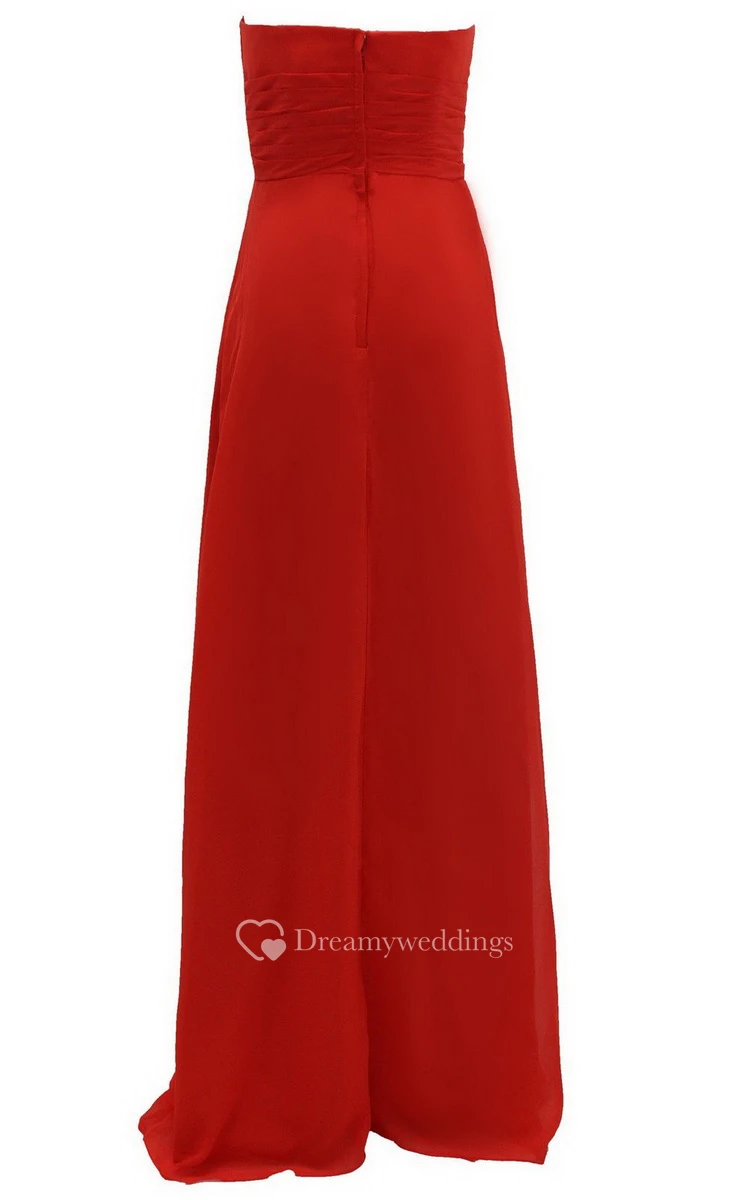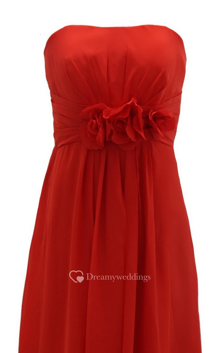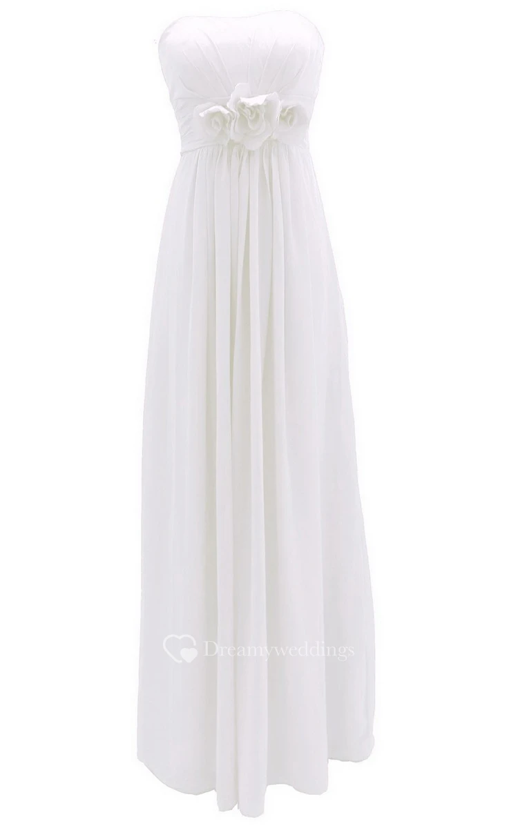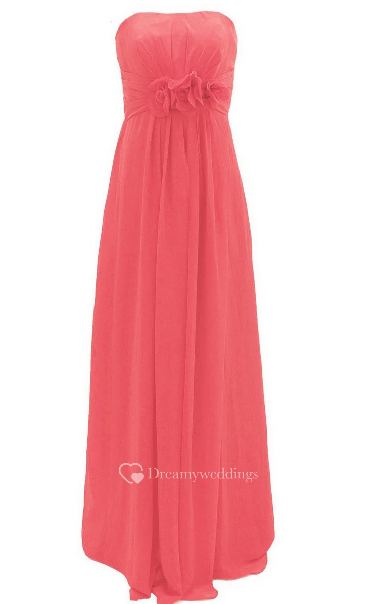 Graceful Strapless Chiffon A-line Gown With Flowers