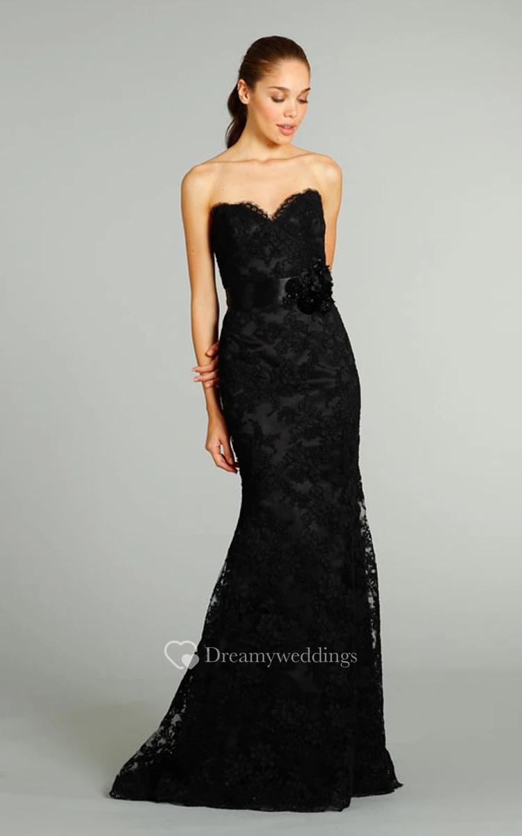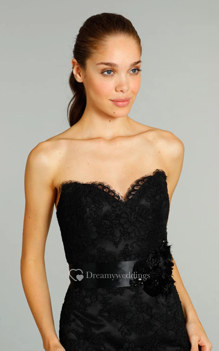 Graceful Sweetheart Neckline Lace Gown With Floral Embellished Satin Ribbon