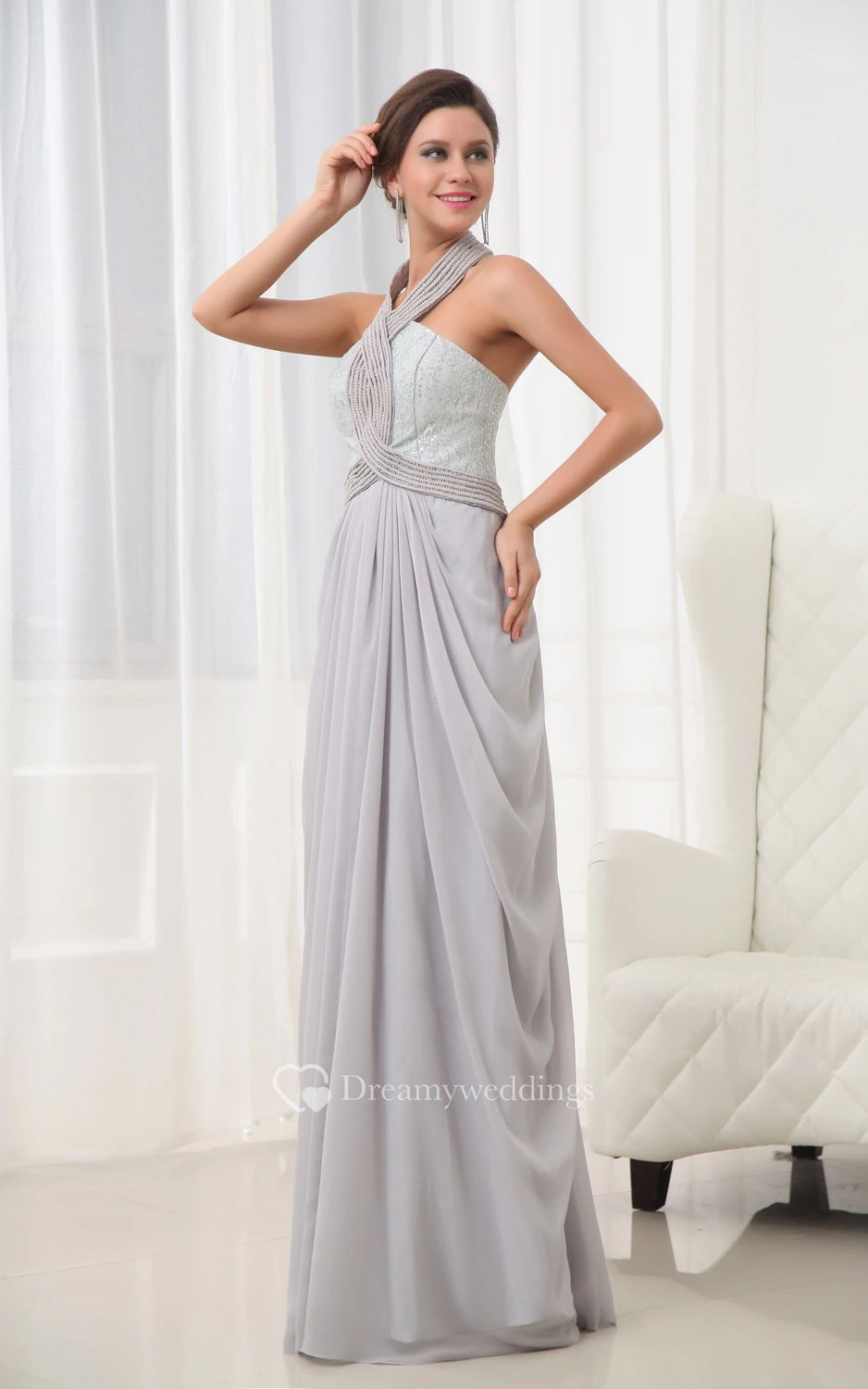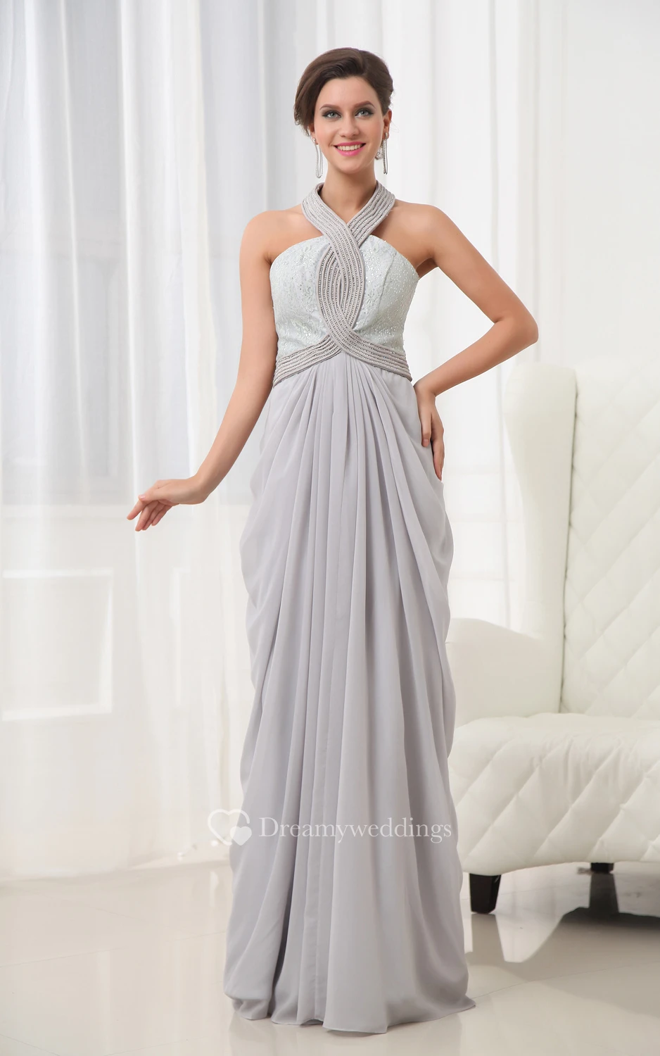 Graceful Vintage Halter A-Line Chiffon Gown Lace Bodice Beading Details