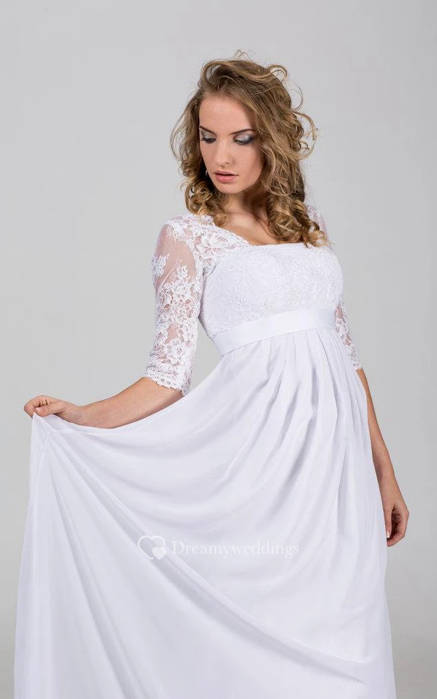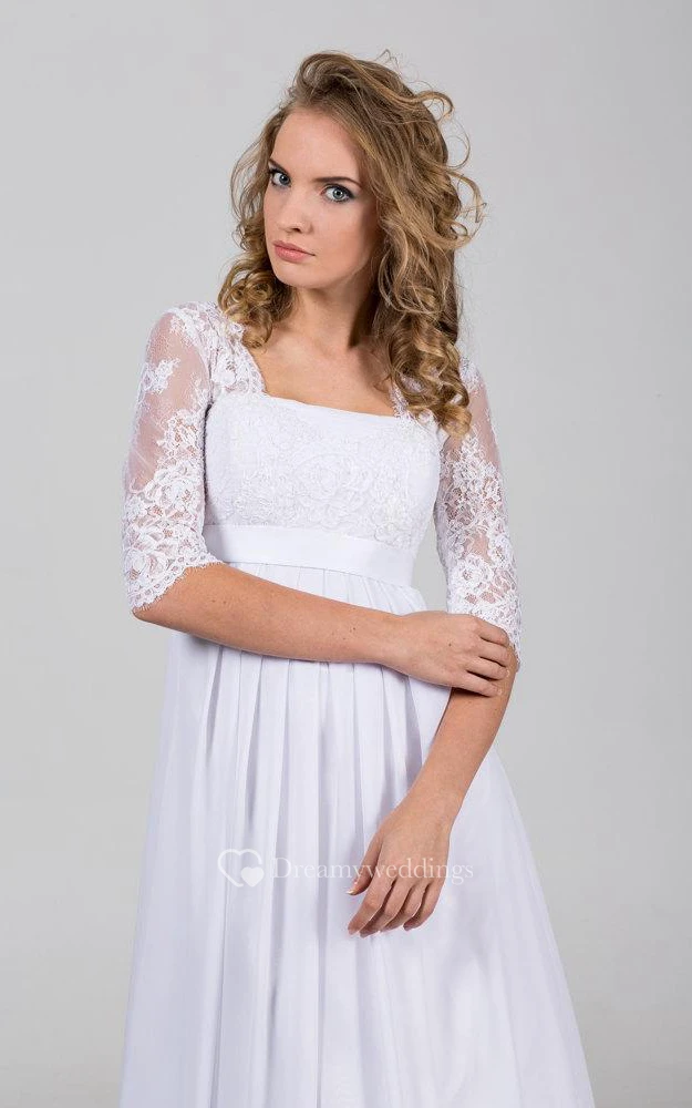 Half Sleeve A-Line Chiffon Dress With Square Neckline and Pleats