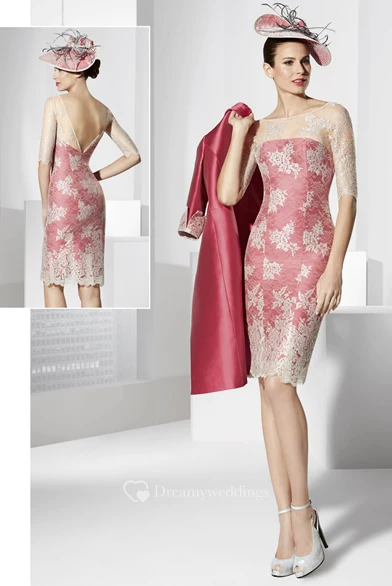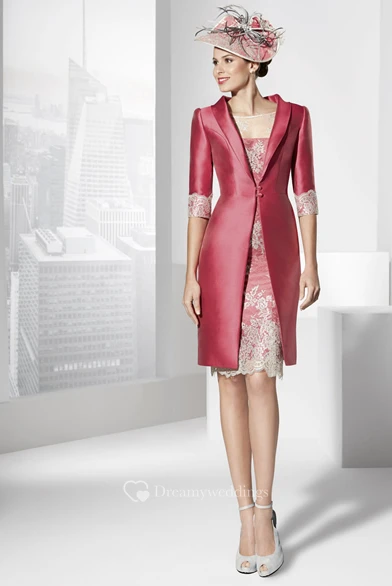 Half-Sleeve Appliqued Knee-Length Satin Prom Dress With Jacket