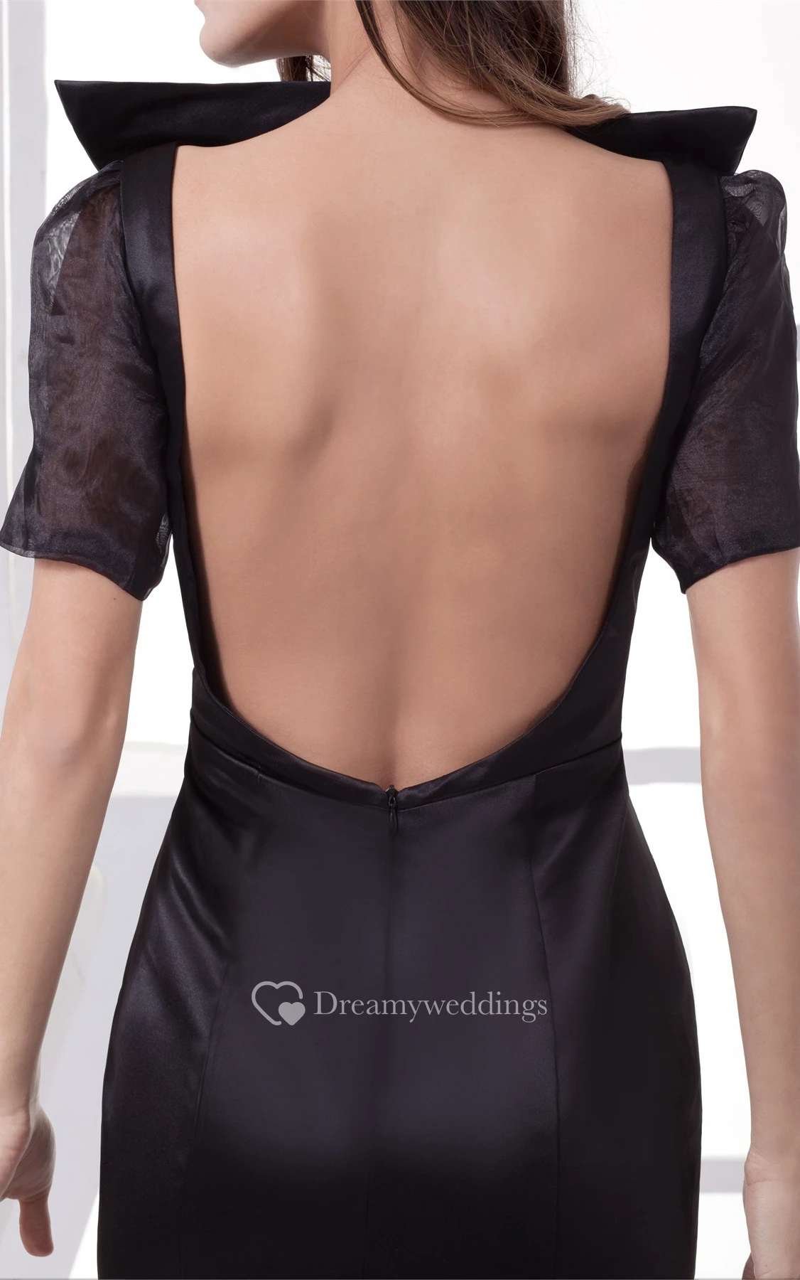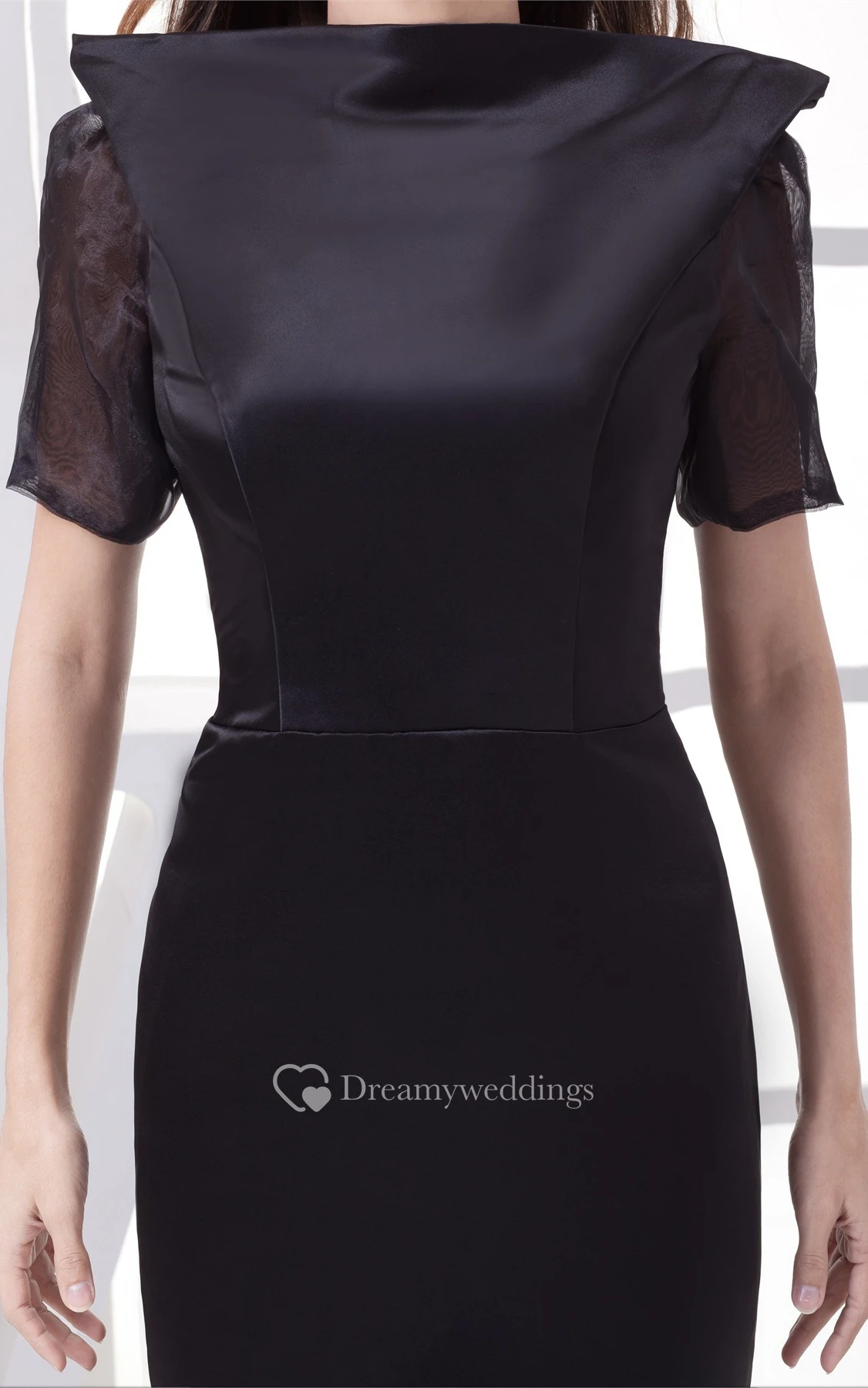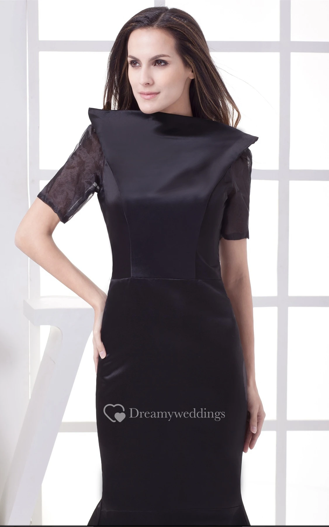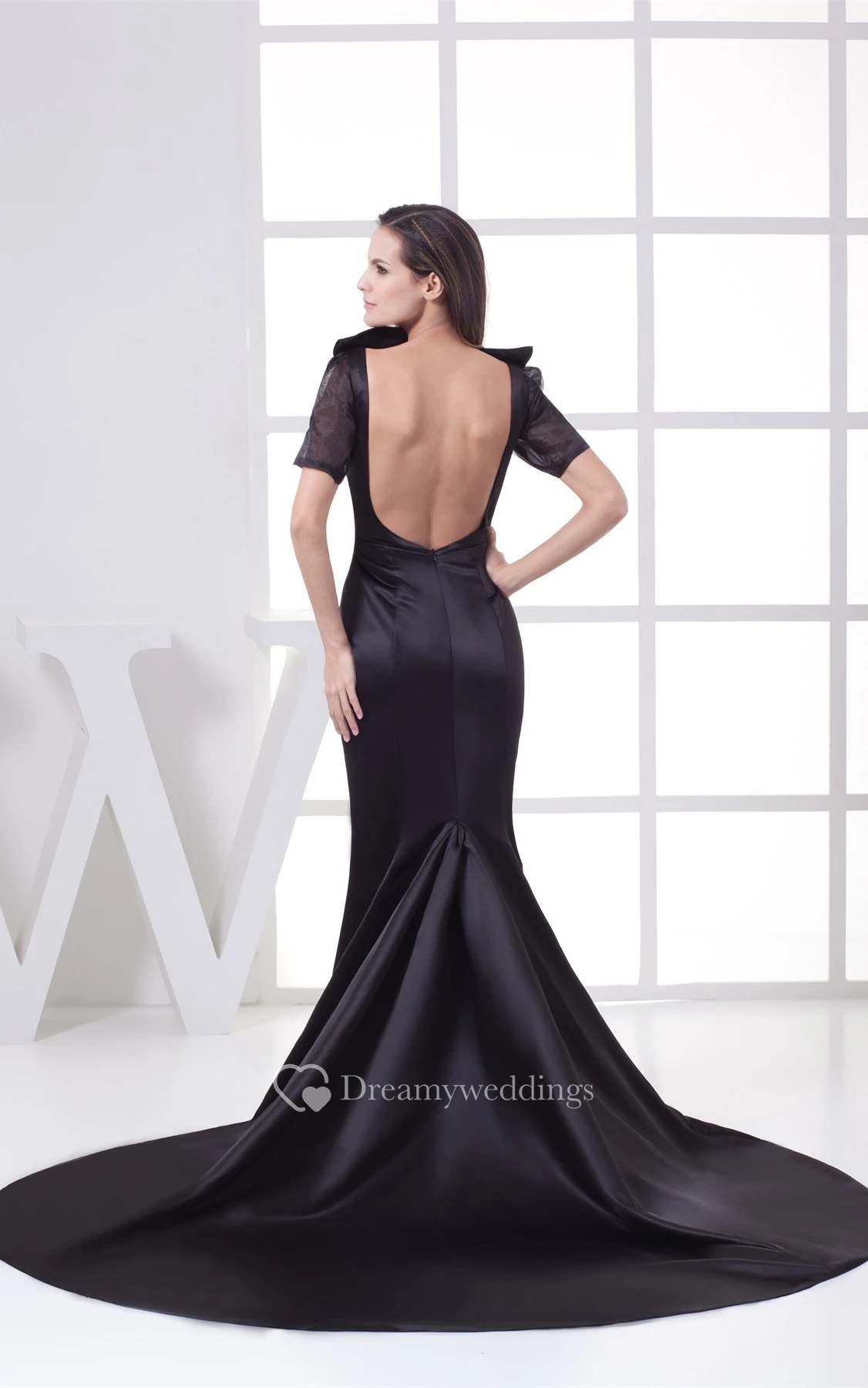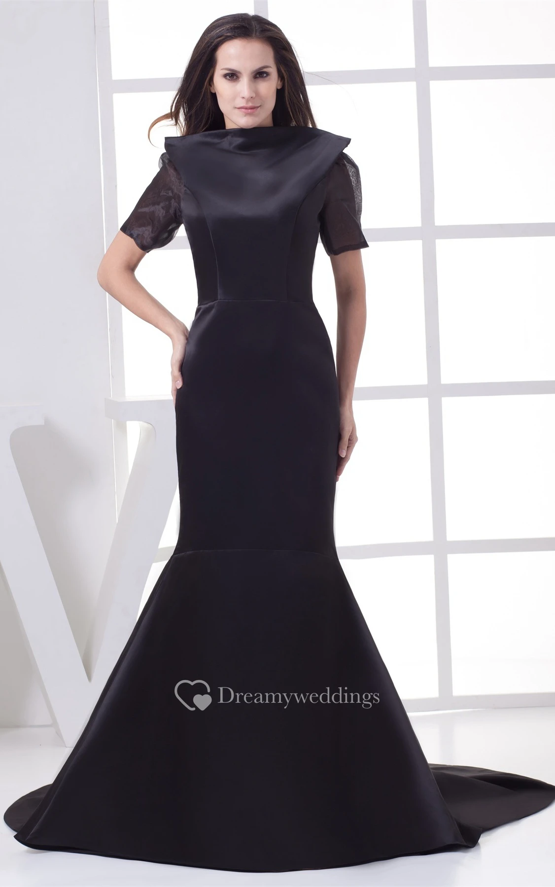 Half-Sleeve Mermaid Satin Keyhole Back and Dress With Court Train
