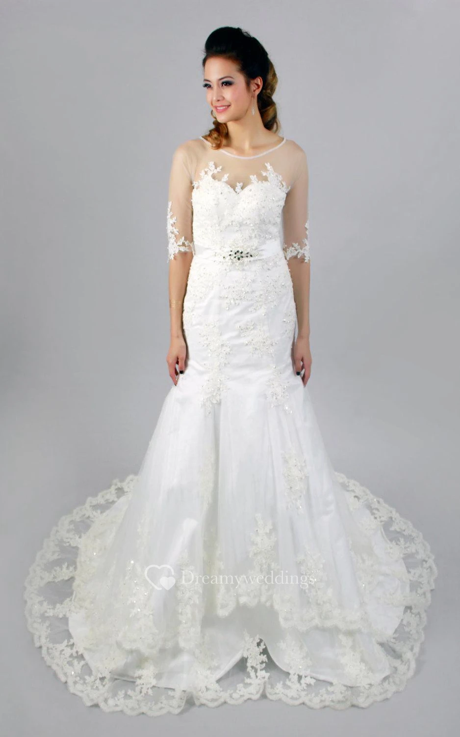 Half Sleeve Scoop Neckline Mermaid Lace Dress With Beadings