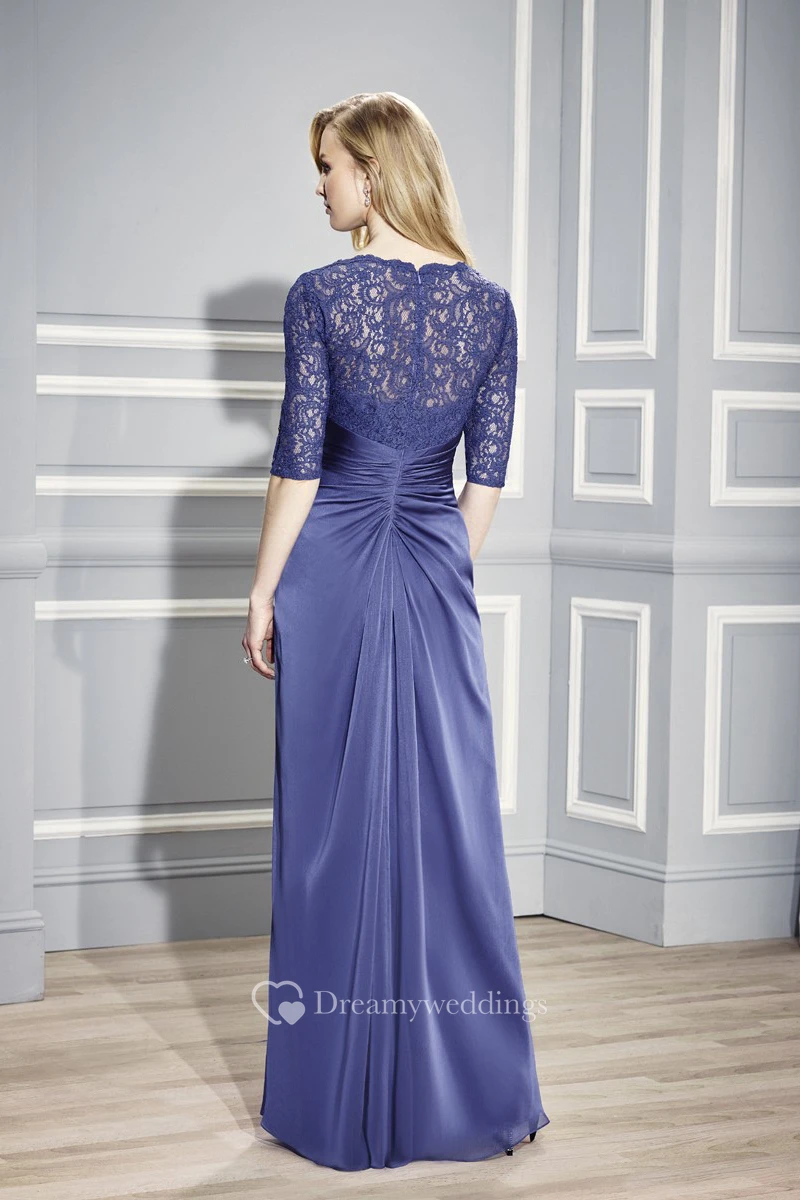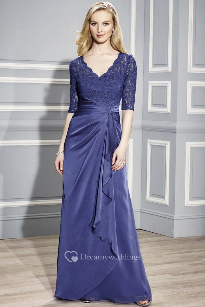Half Sleeve V-Neck Appliqued Chiffon Formal Dress