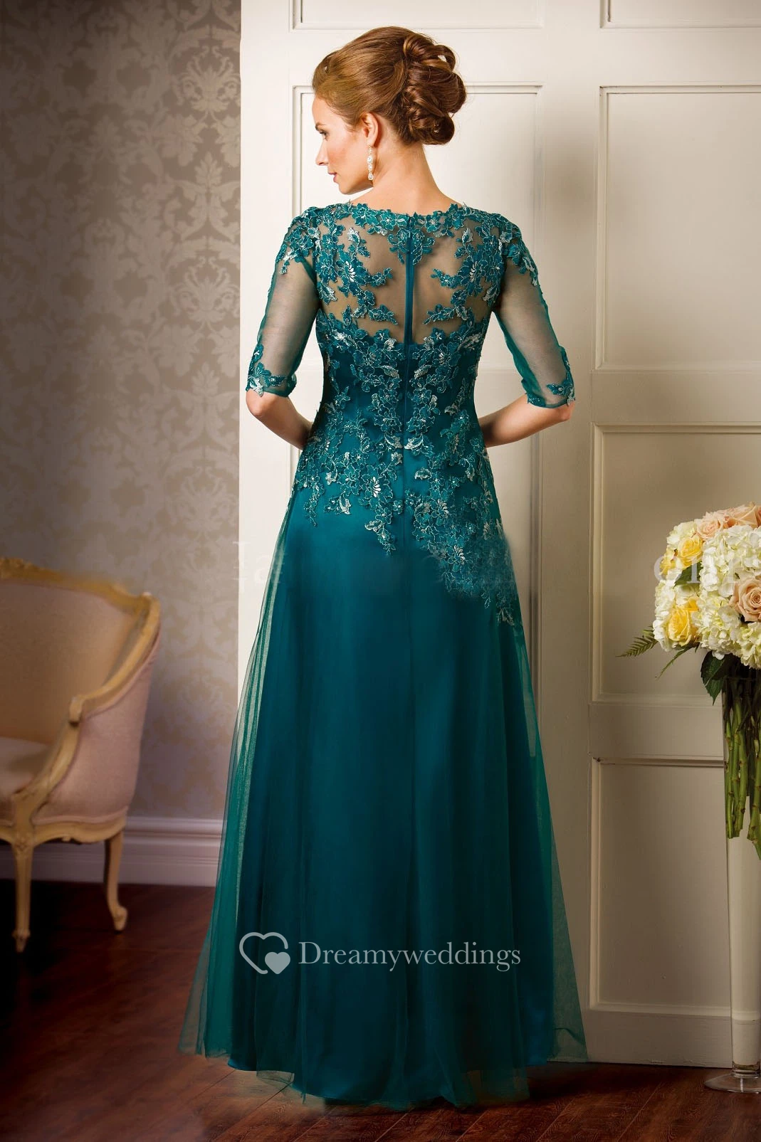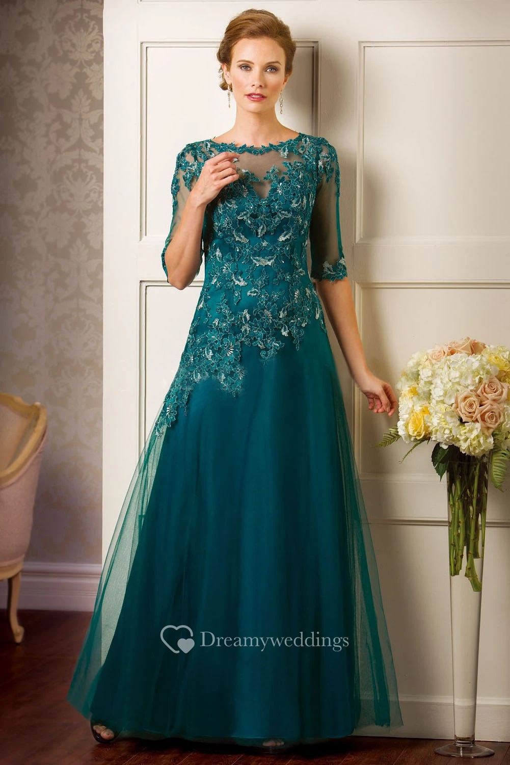 Half-Sleeved A-Line Tulle Gown With Appliques