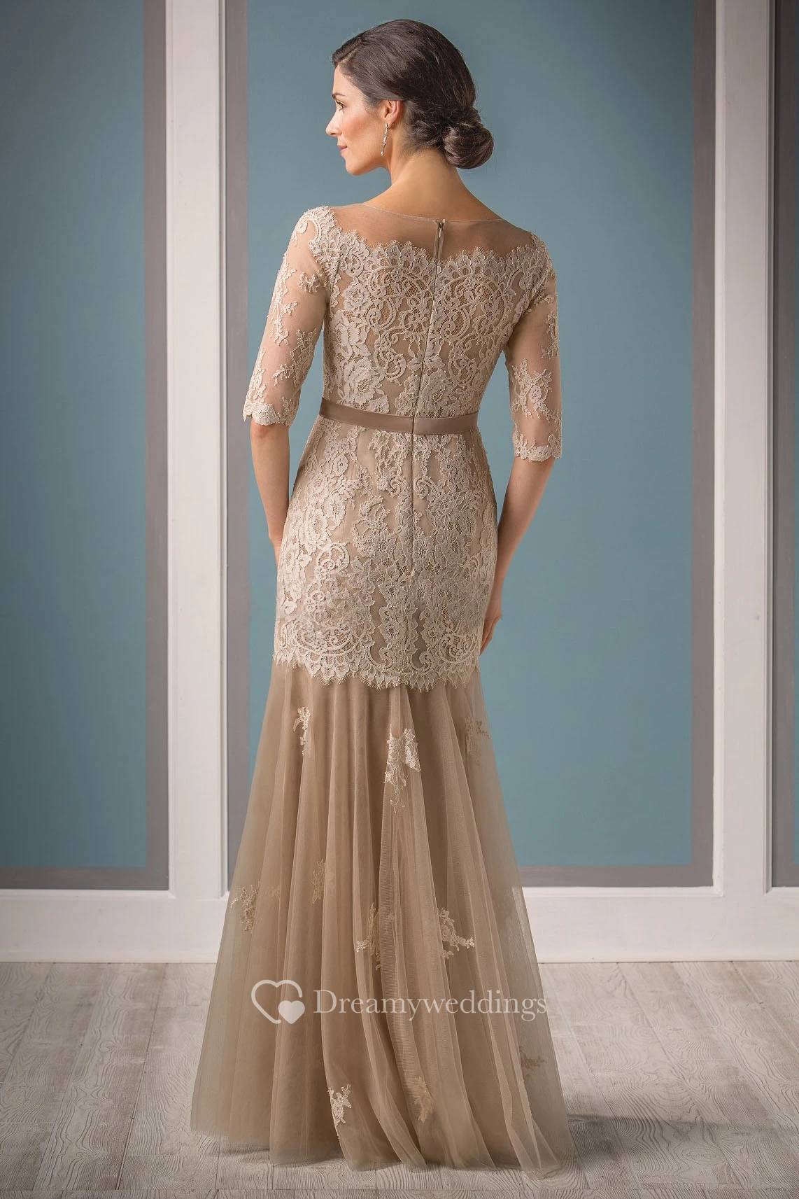 Half-Sleeved Mermaid Mother Of The Bride Dress With Appliques And Dropped Waist