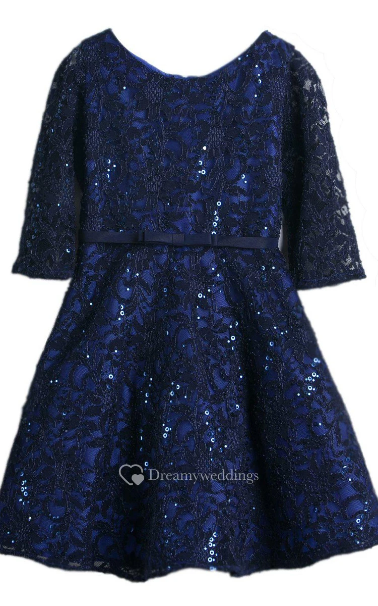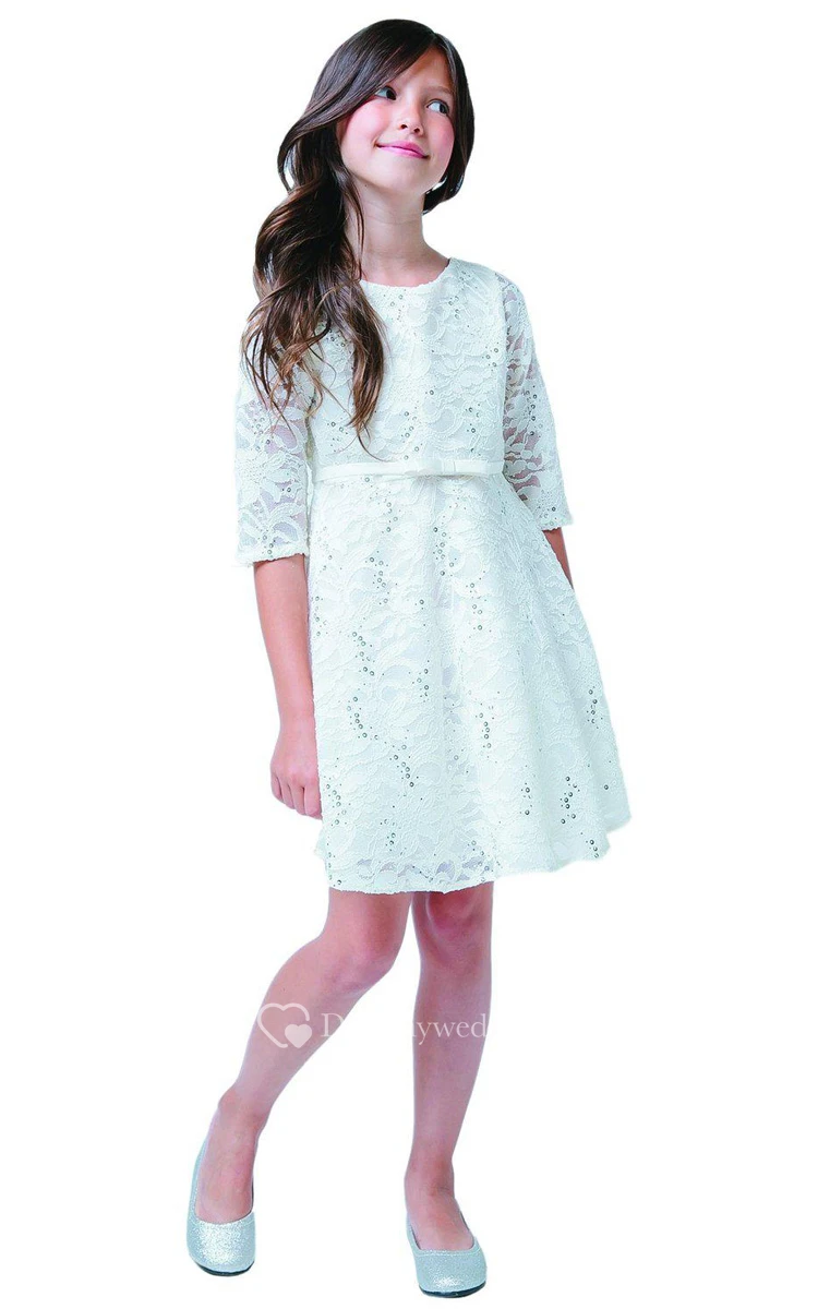 Half-sleeved Short Lace Dress With Belt