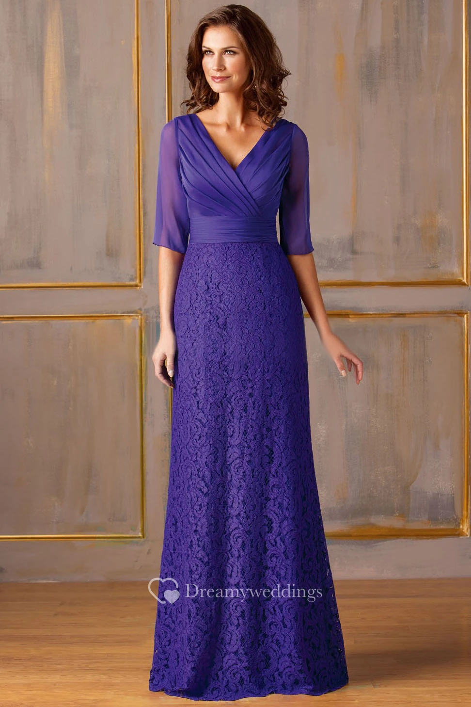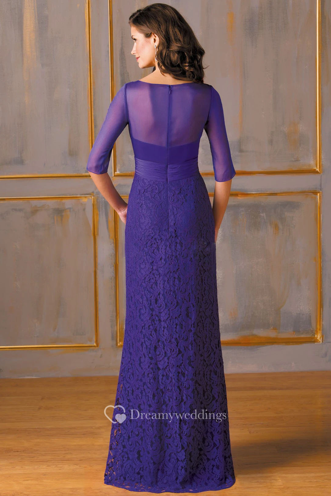 Half-Sleeved V-Neck Lace Mother Of The Bride Dress With Illusion Back