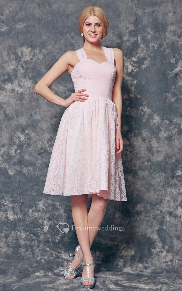 Halter A-line Short Chiffon and Lace Dress