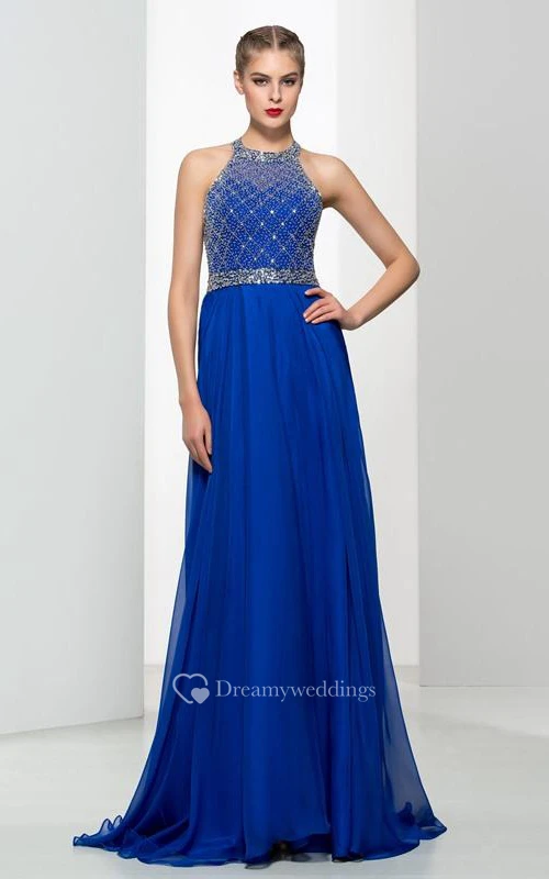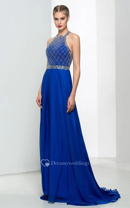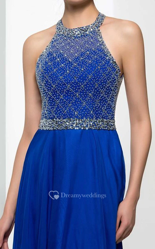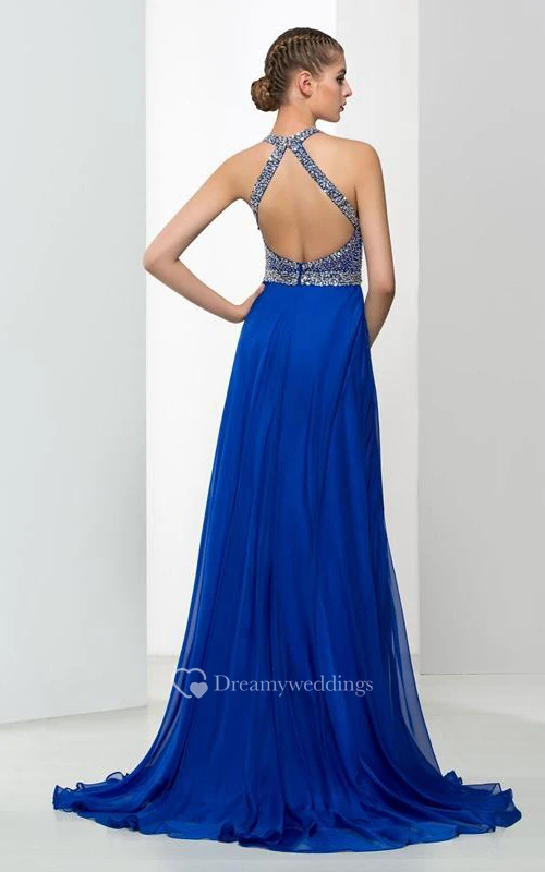 Halter Beading Sequins Backless Prom Dres