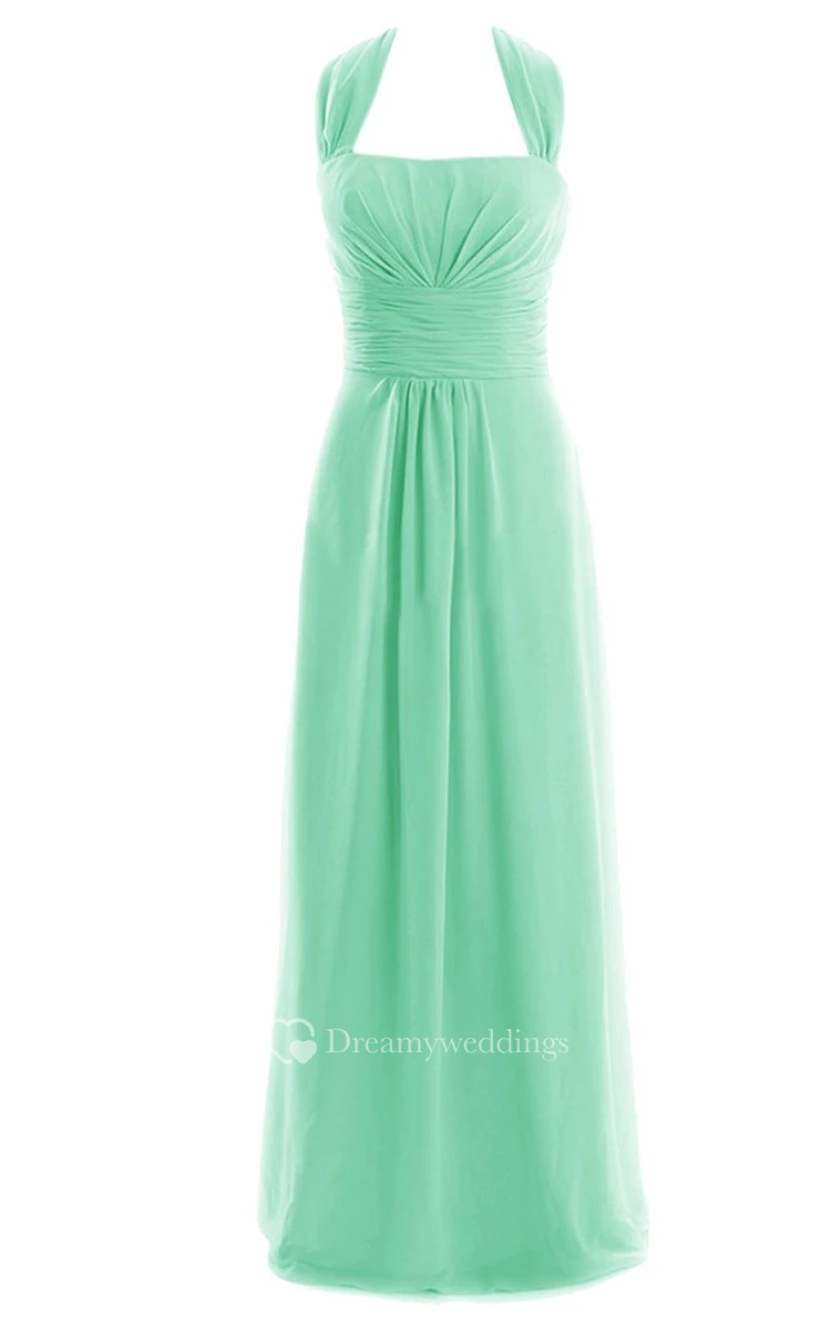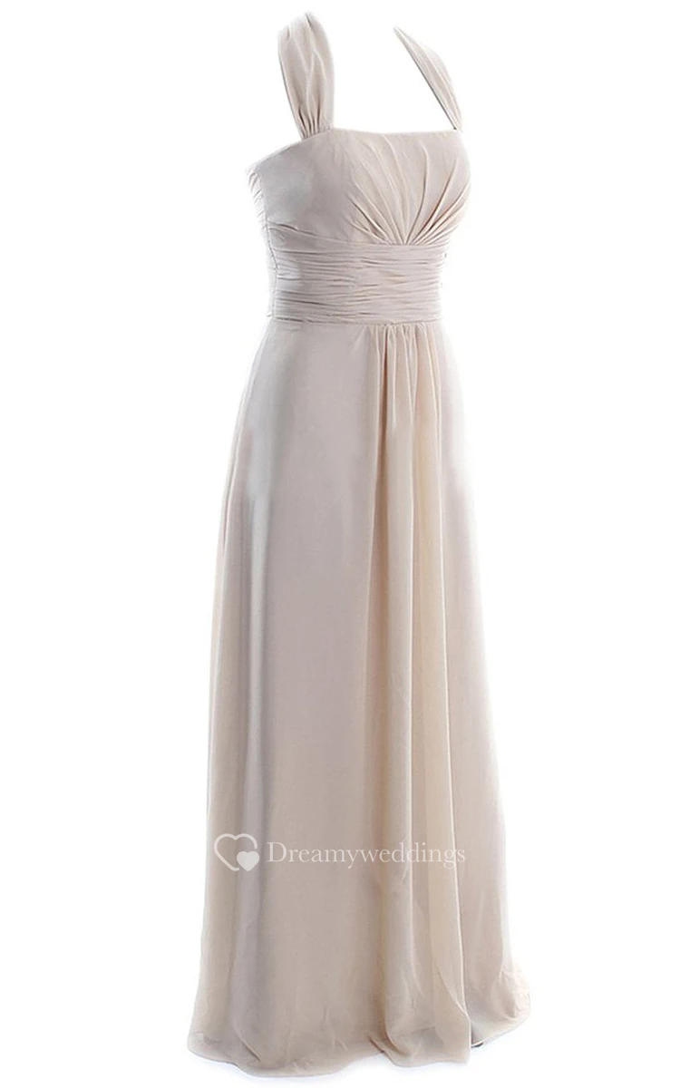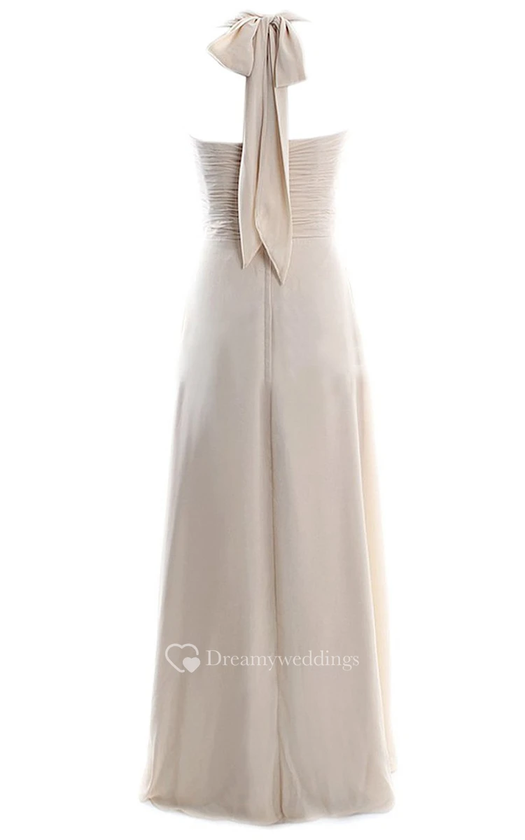 Halter Drapped Chiffon A-line Gown With Ruched Band
