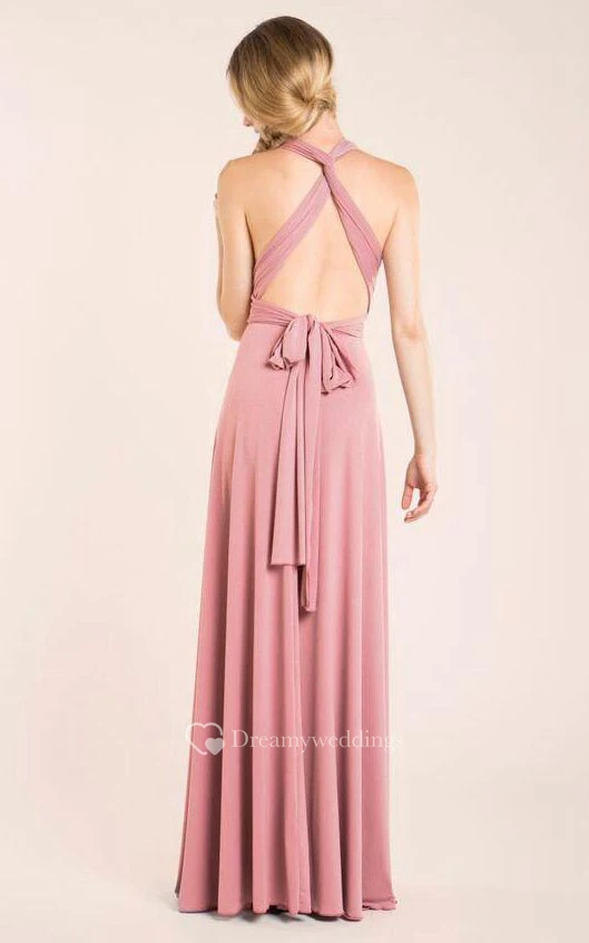 Halter Empire Pleated A-line Jersey Long Dress With Criss-cross Back