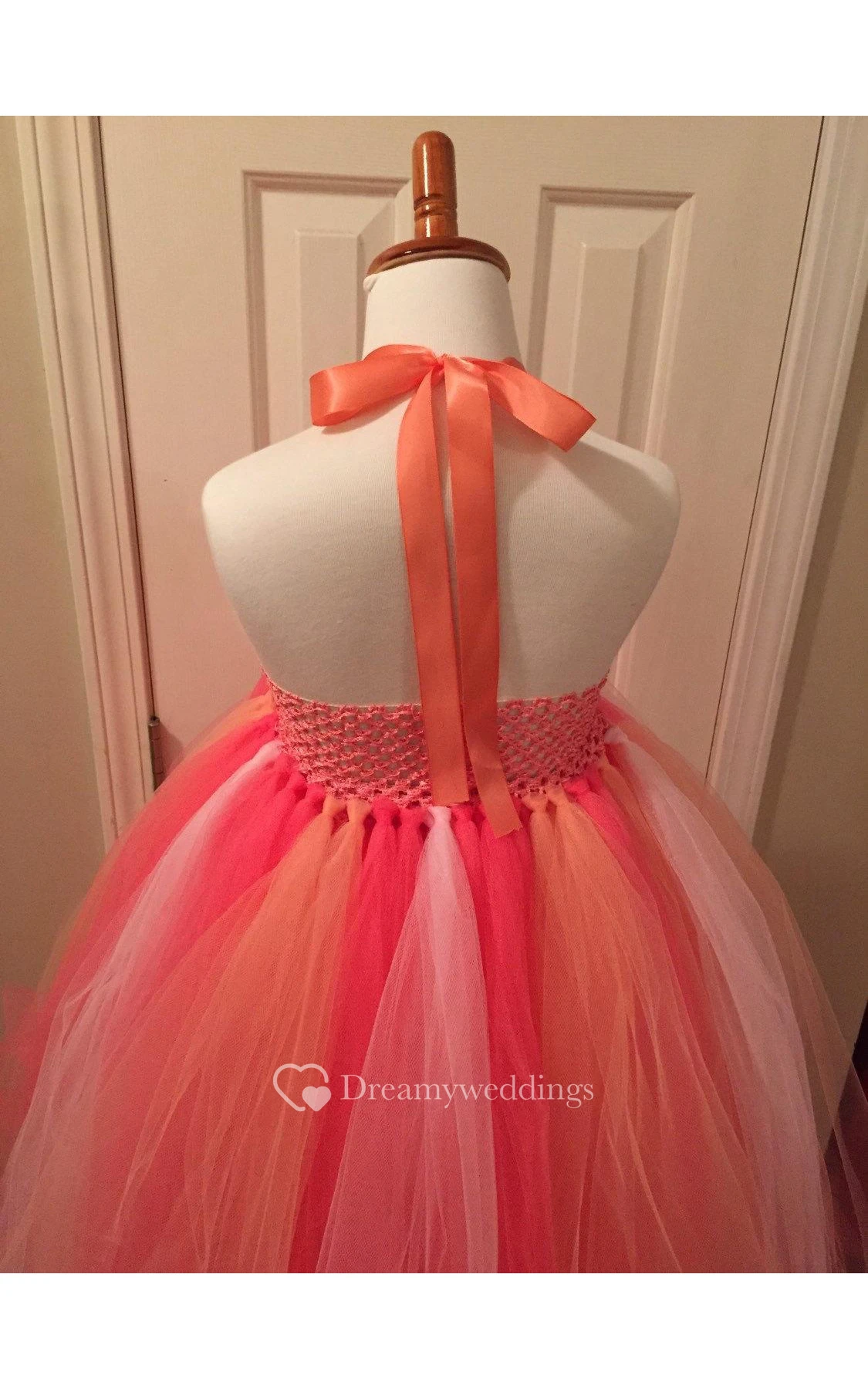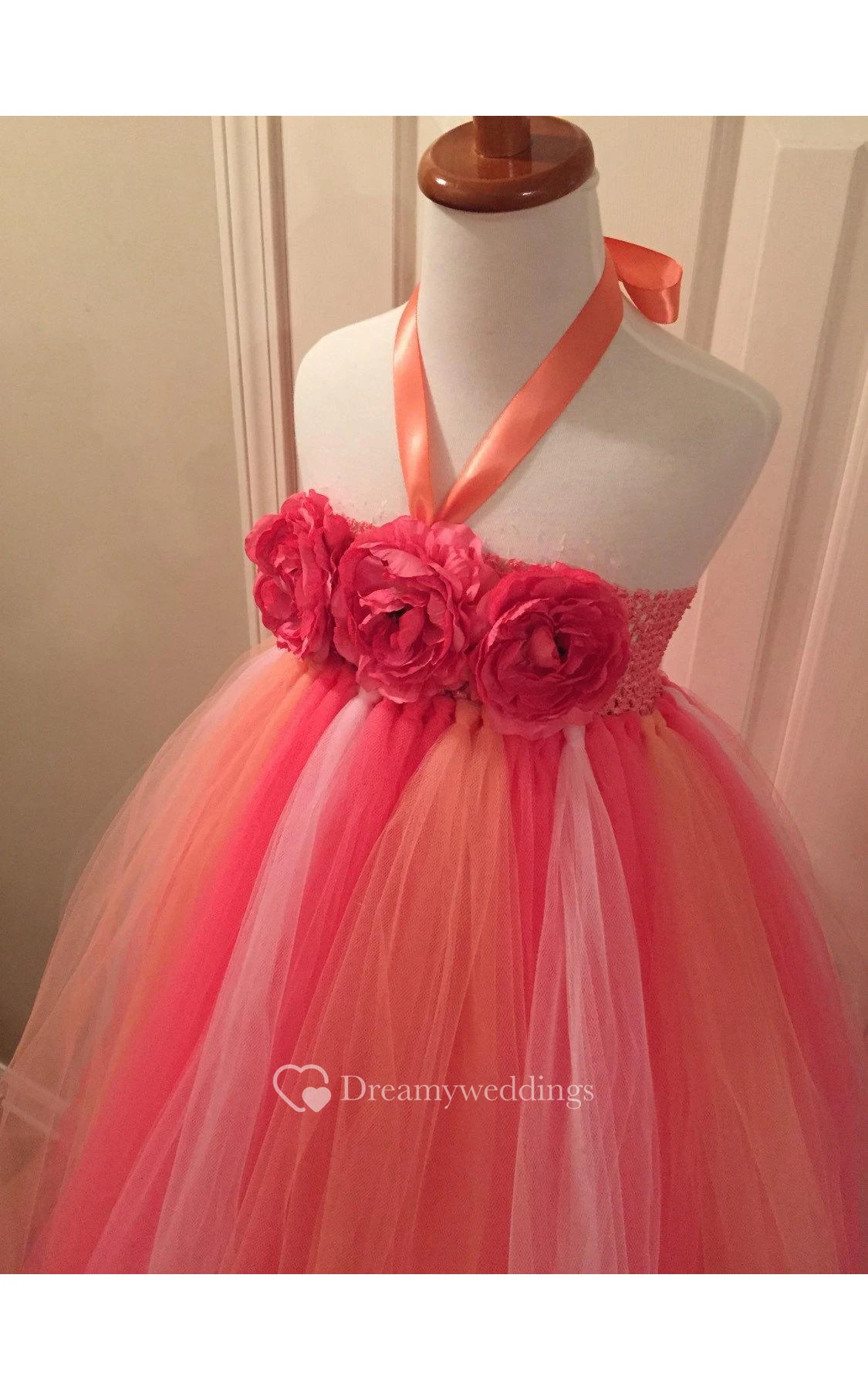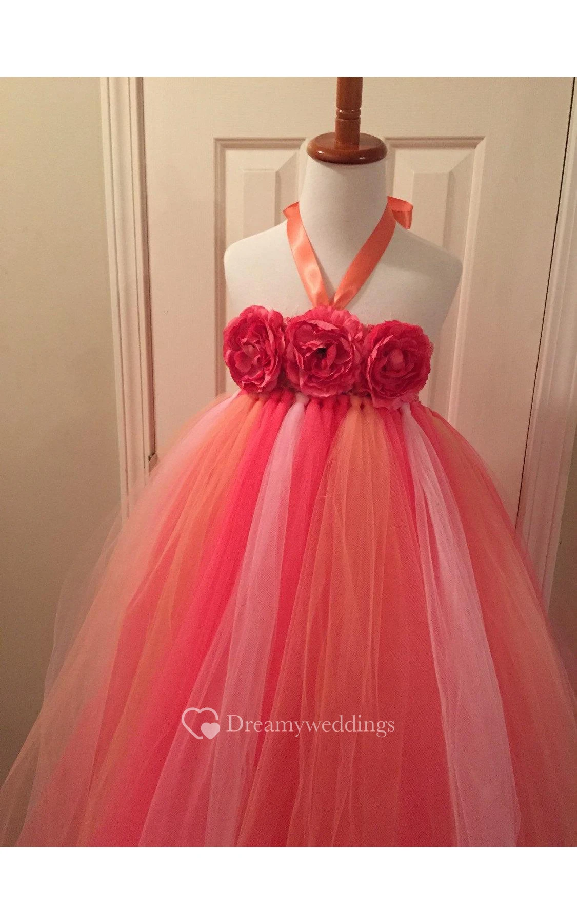Halter Floral Bodice Empire Tulle Ball Gown With Bow