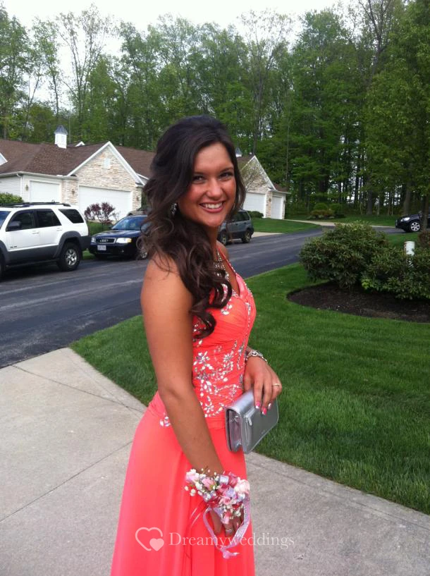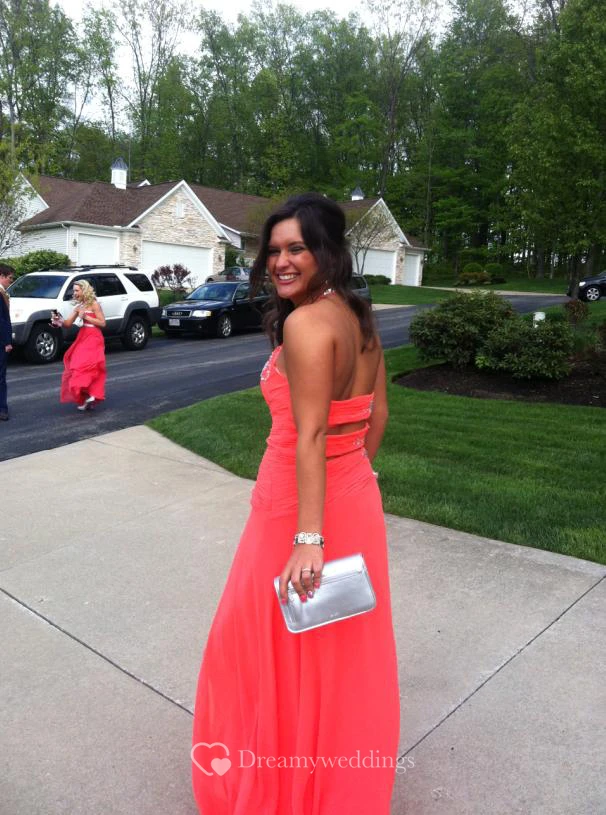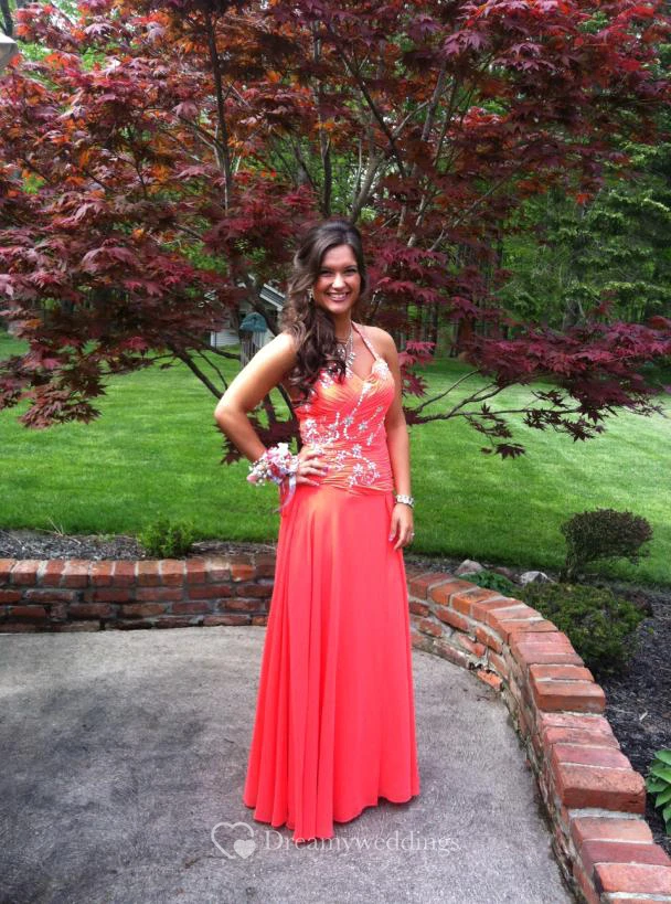 Halter Front Long Prom Dresses With Slit New Arrival Evening Crystal Beaded Watermelon Party Dresses