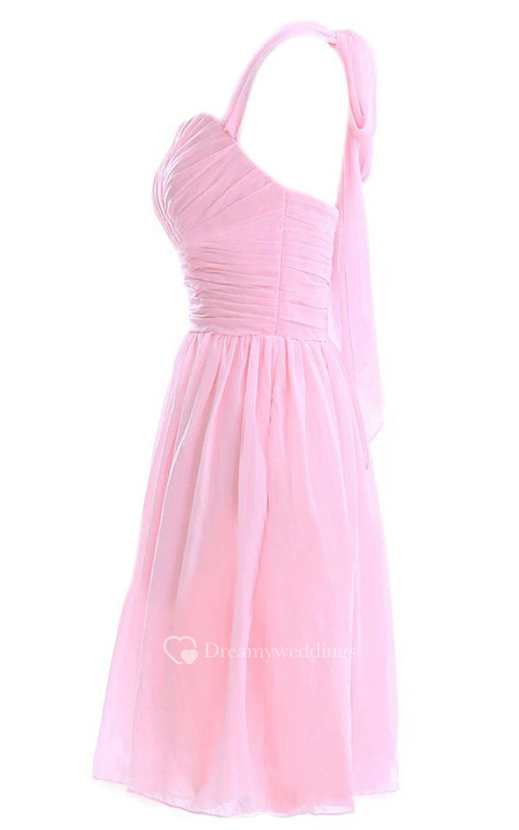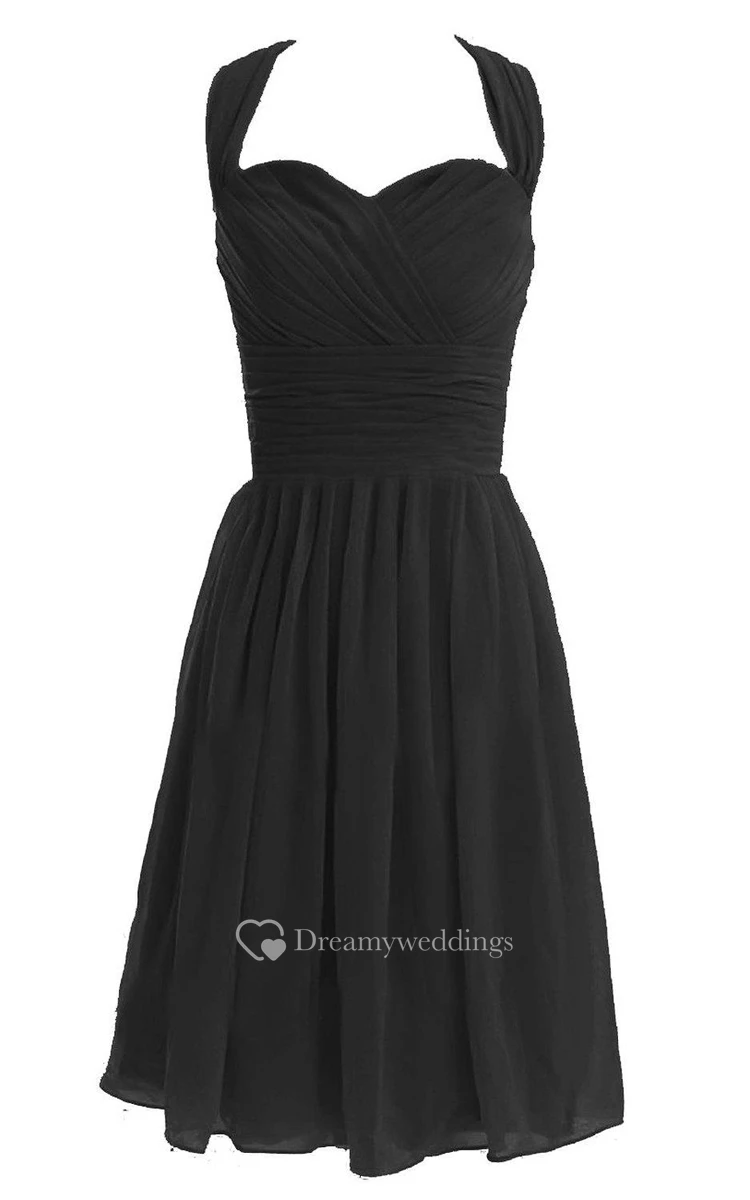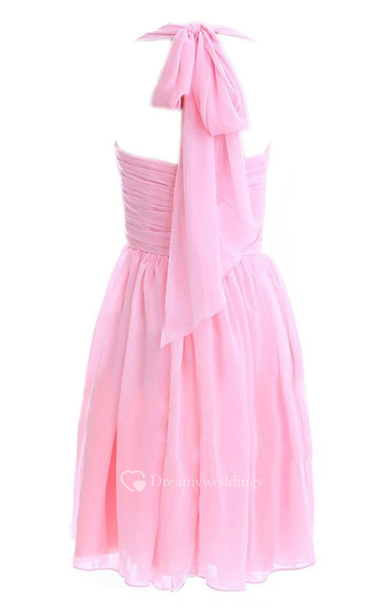 Halter Knee-length Chiffon Dress With Pleats