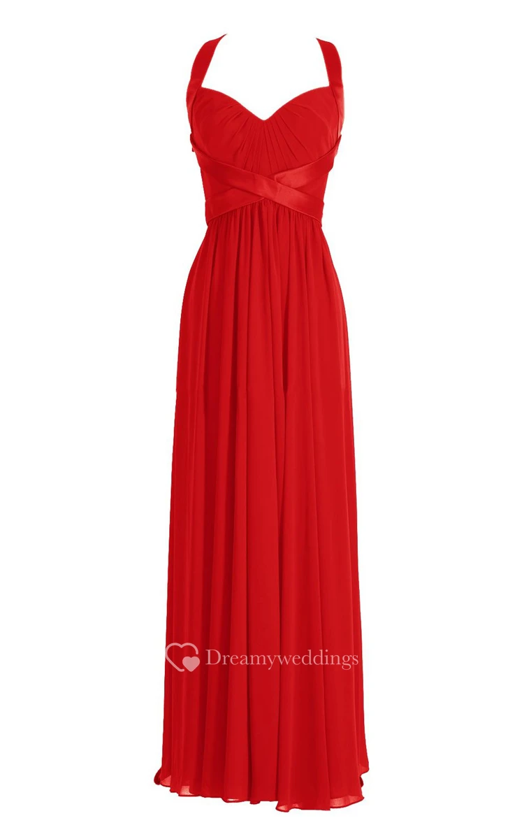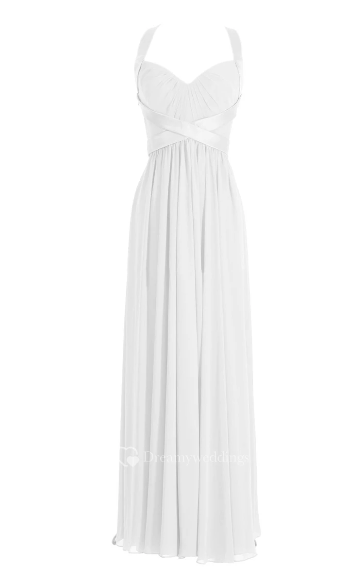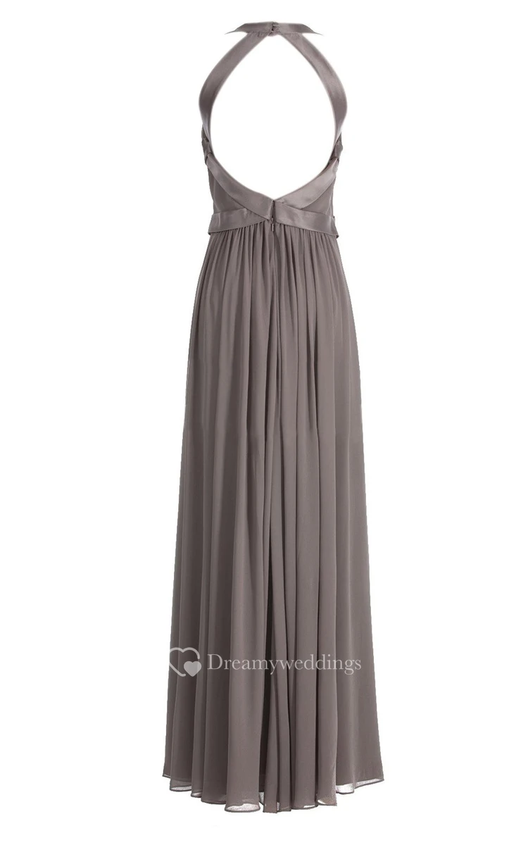 Halter Pleated Chiffon A-line Gown With Deep-v Back