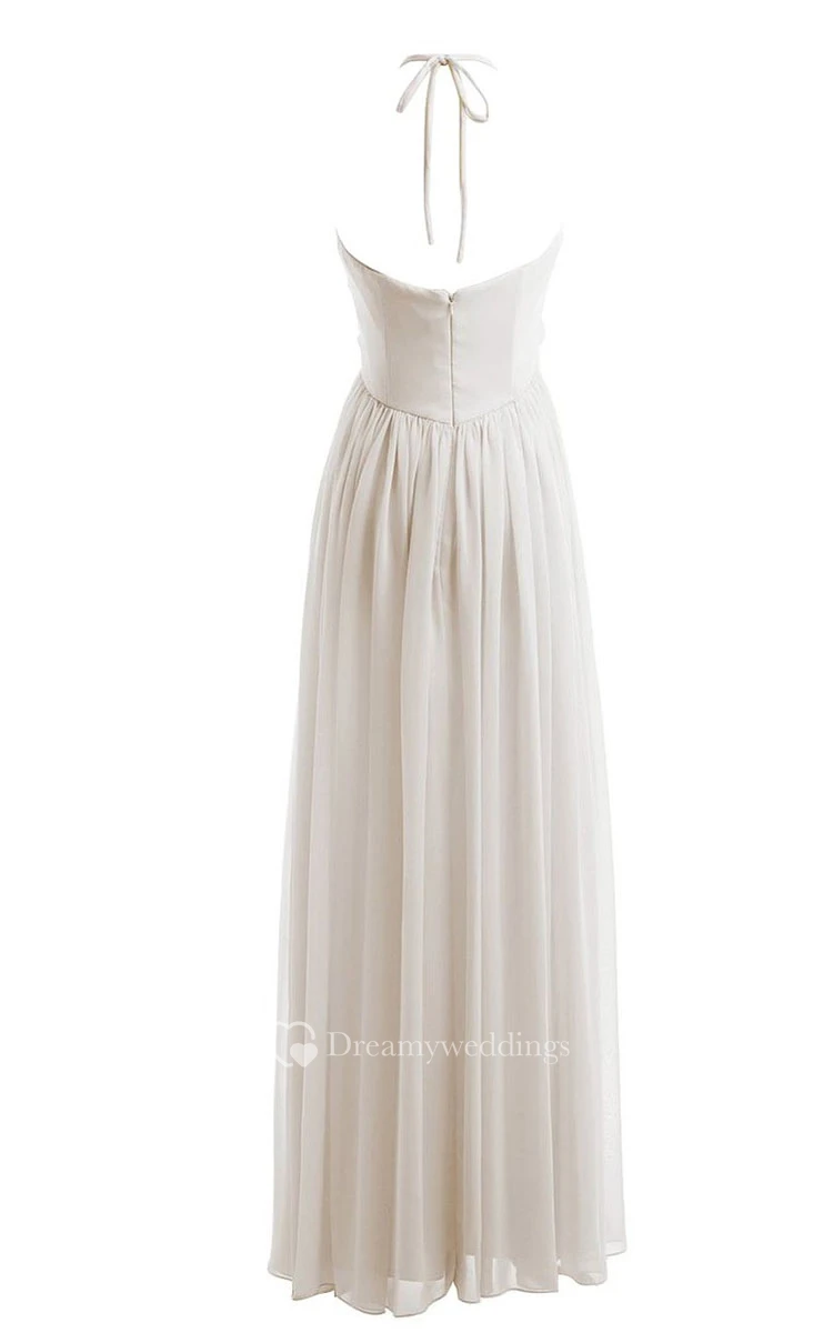 Halter Ruched Chiffon A-line Gown With Zipper Back