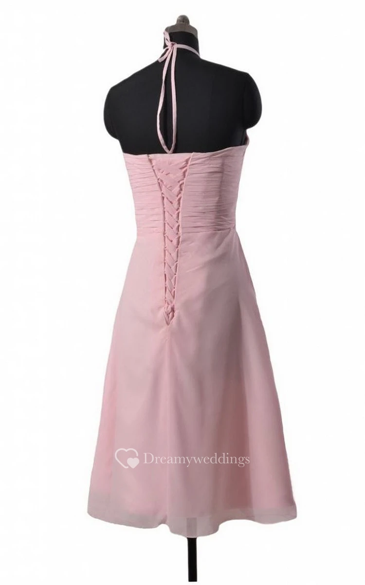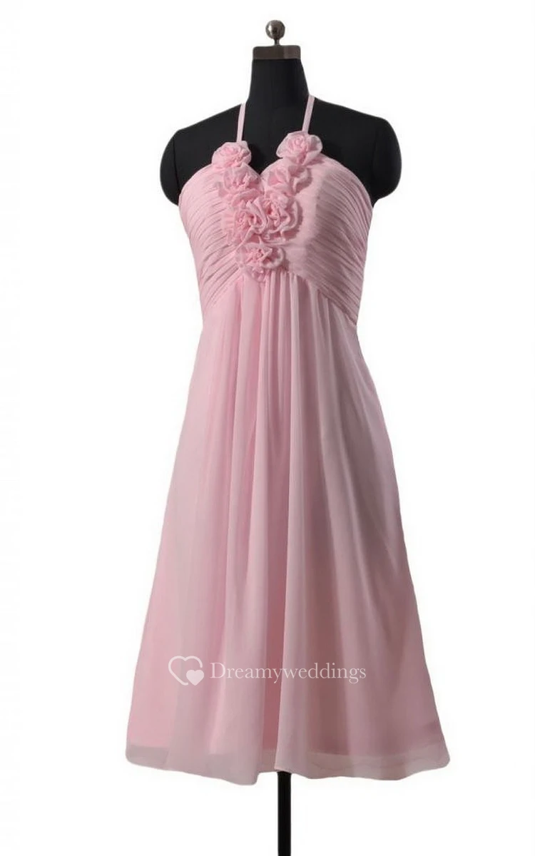 Halter Ruched Short Dress With Flowers