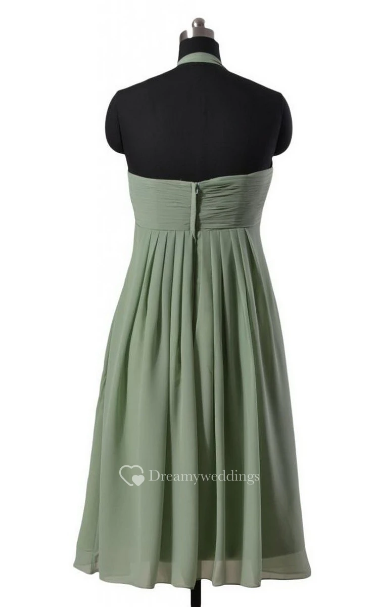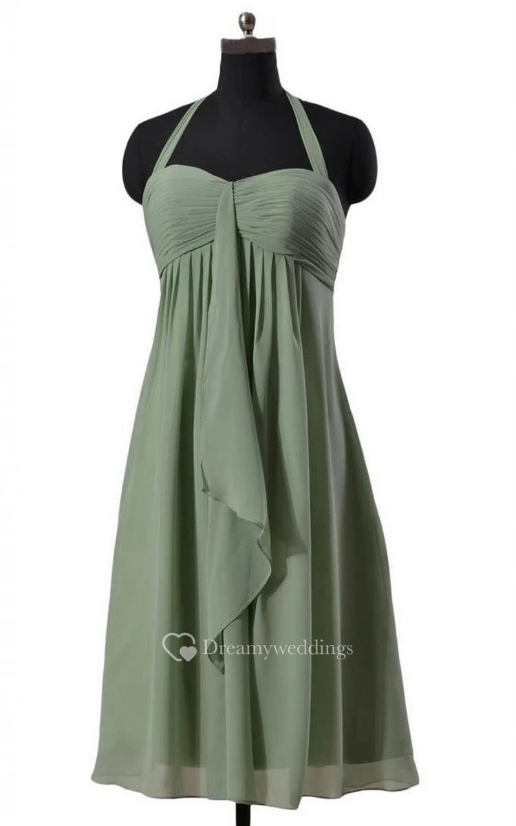Halter Short Empire Chiffon Dress With Ruching