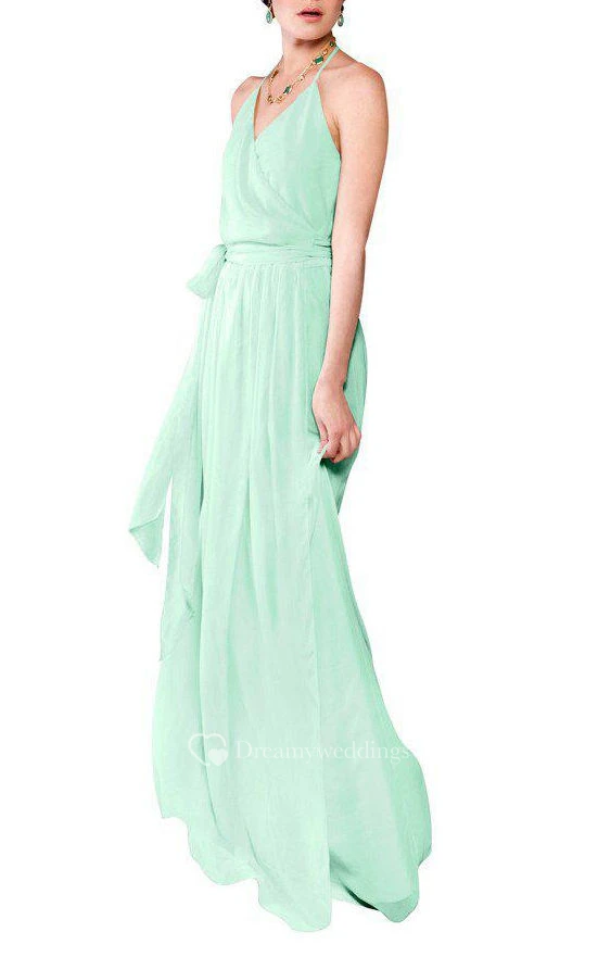 Halter Wrap Chiffon Bridesmaid Dress with Sash