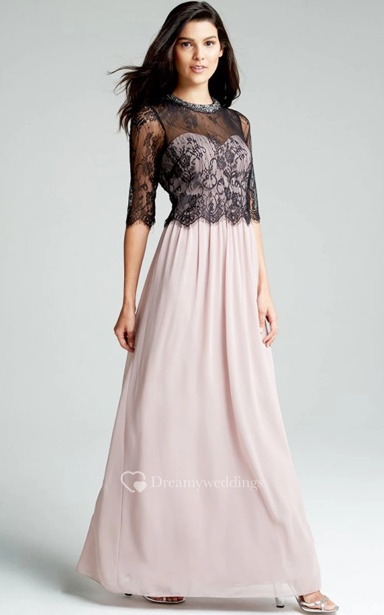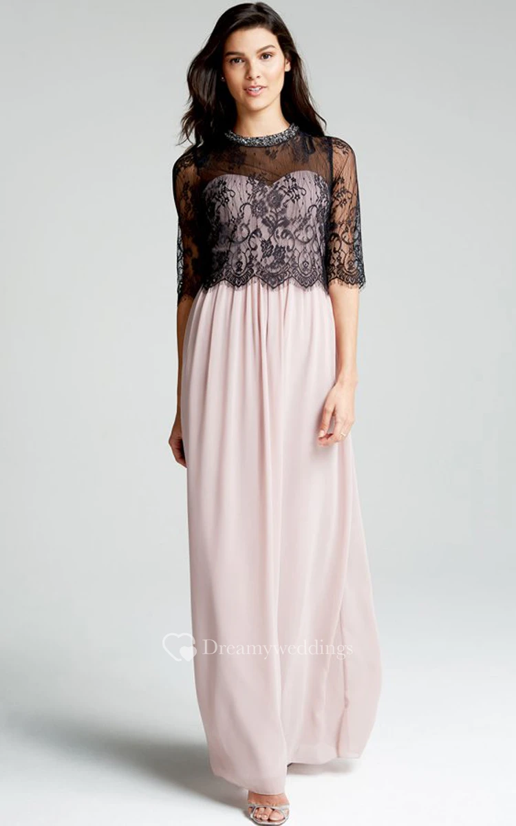 High Gown With Lace Illusion Half-Sleeved Jacket