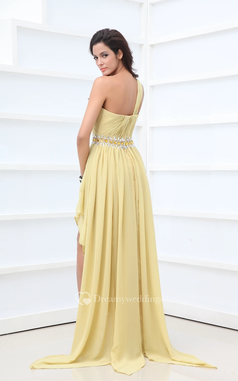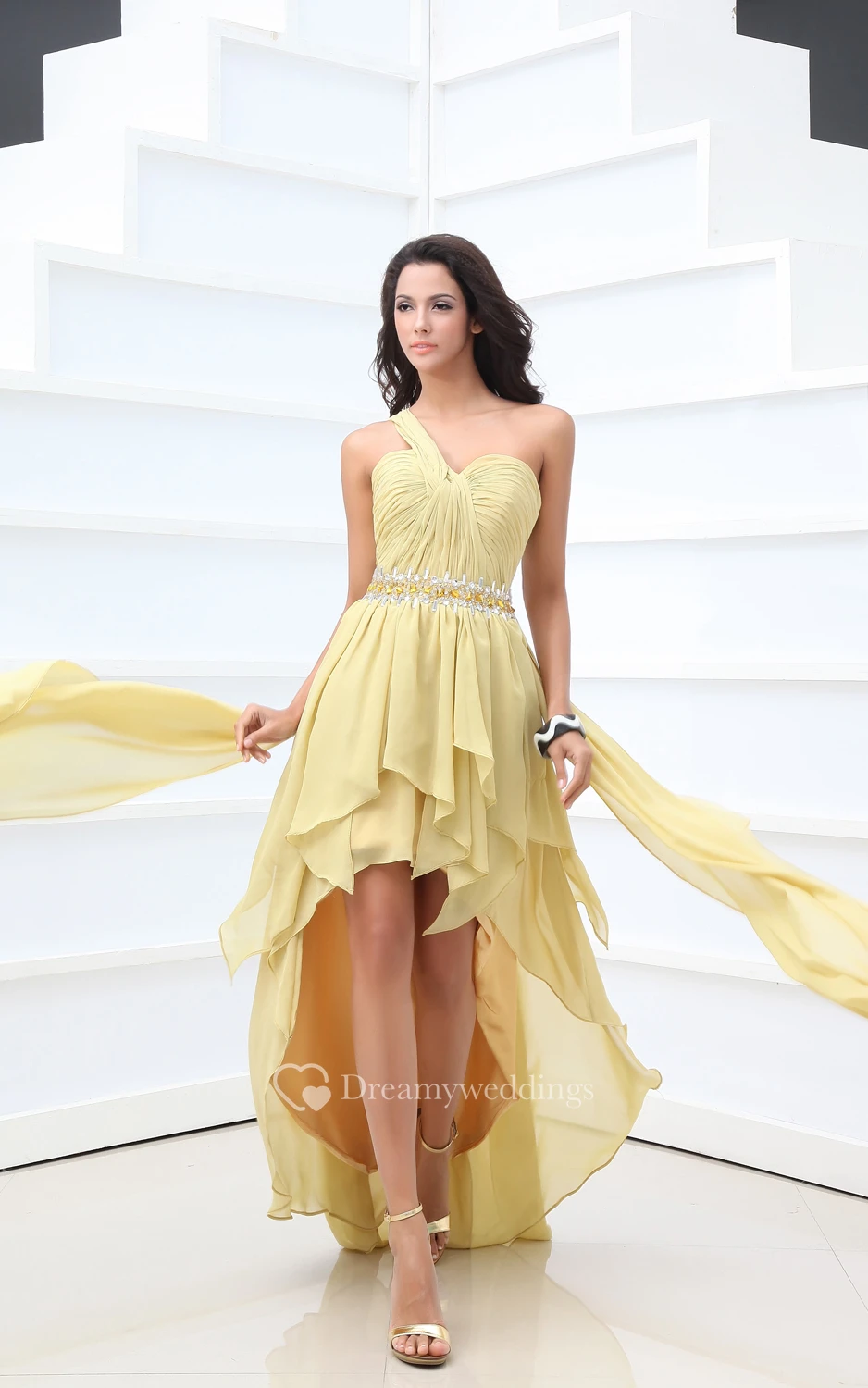 High-Low Chiffon One-Shoulder Dress With Ruching