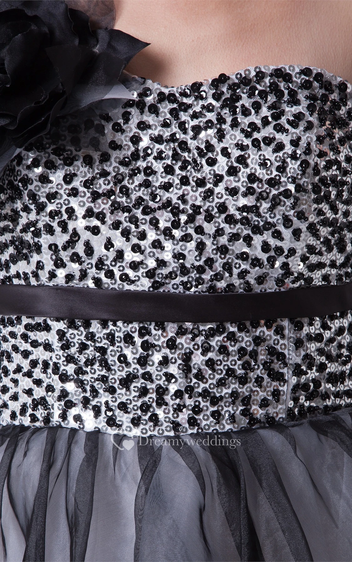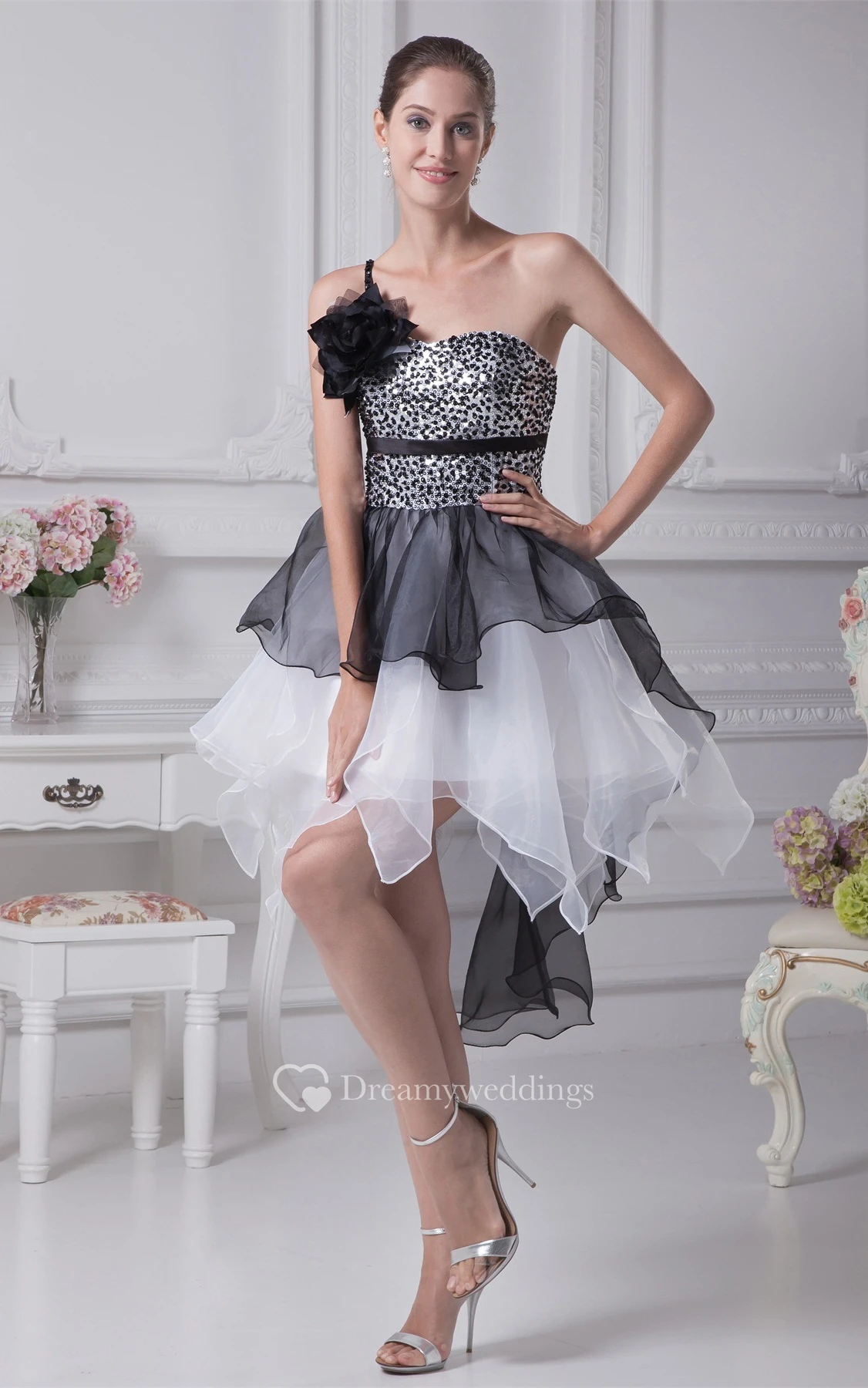 High Low Flowered One Shoulder Jeweled Bodice Gown With Layered Ruffles