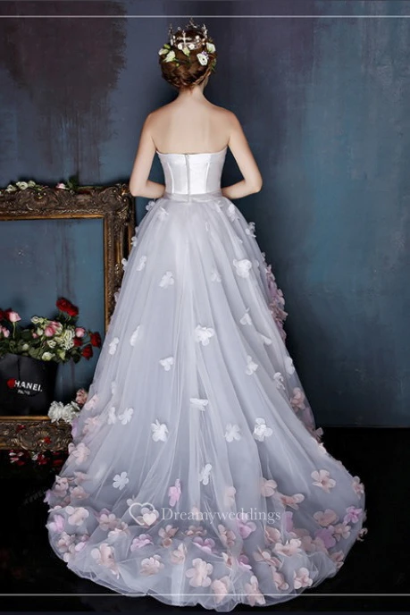 High-low Sleeveless Cute Open Back Dress With 3D Floral Appliques And Delicate Bow