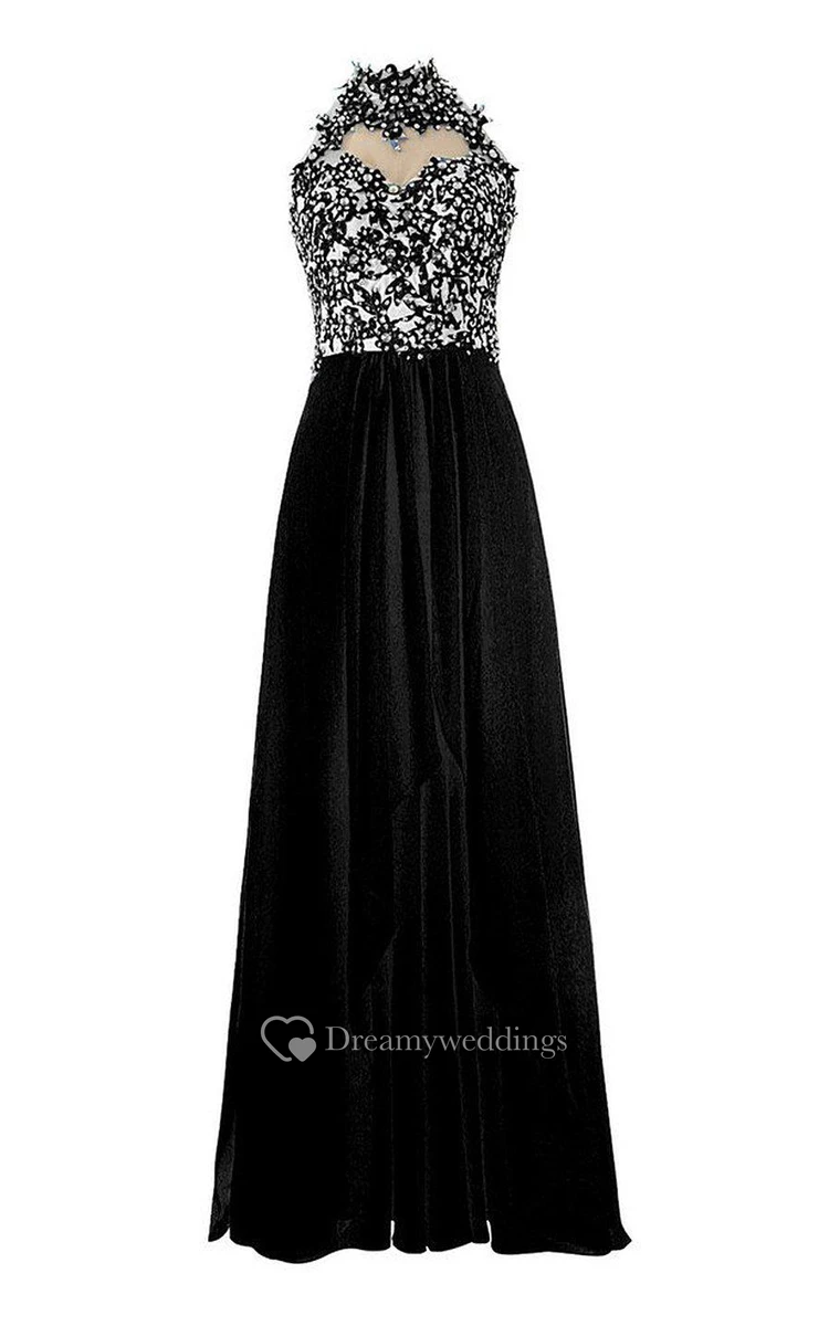 High-neck A-line Dress With Beadings and Keyhole