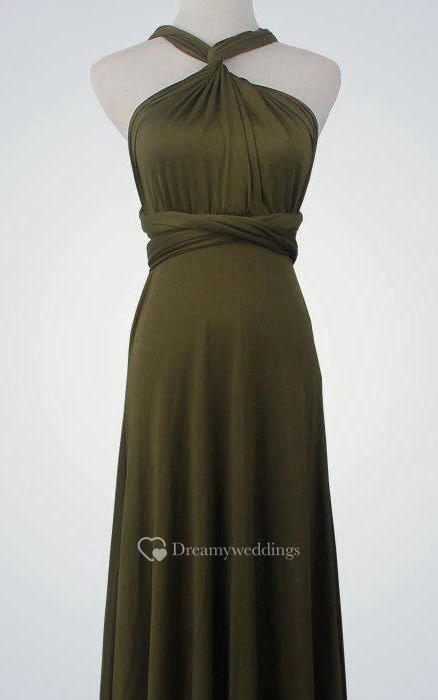 High Neck A-line Jersey Floor Length Dress With Back Cross Straps