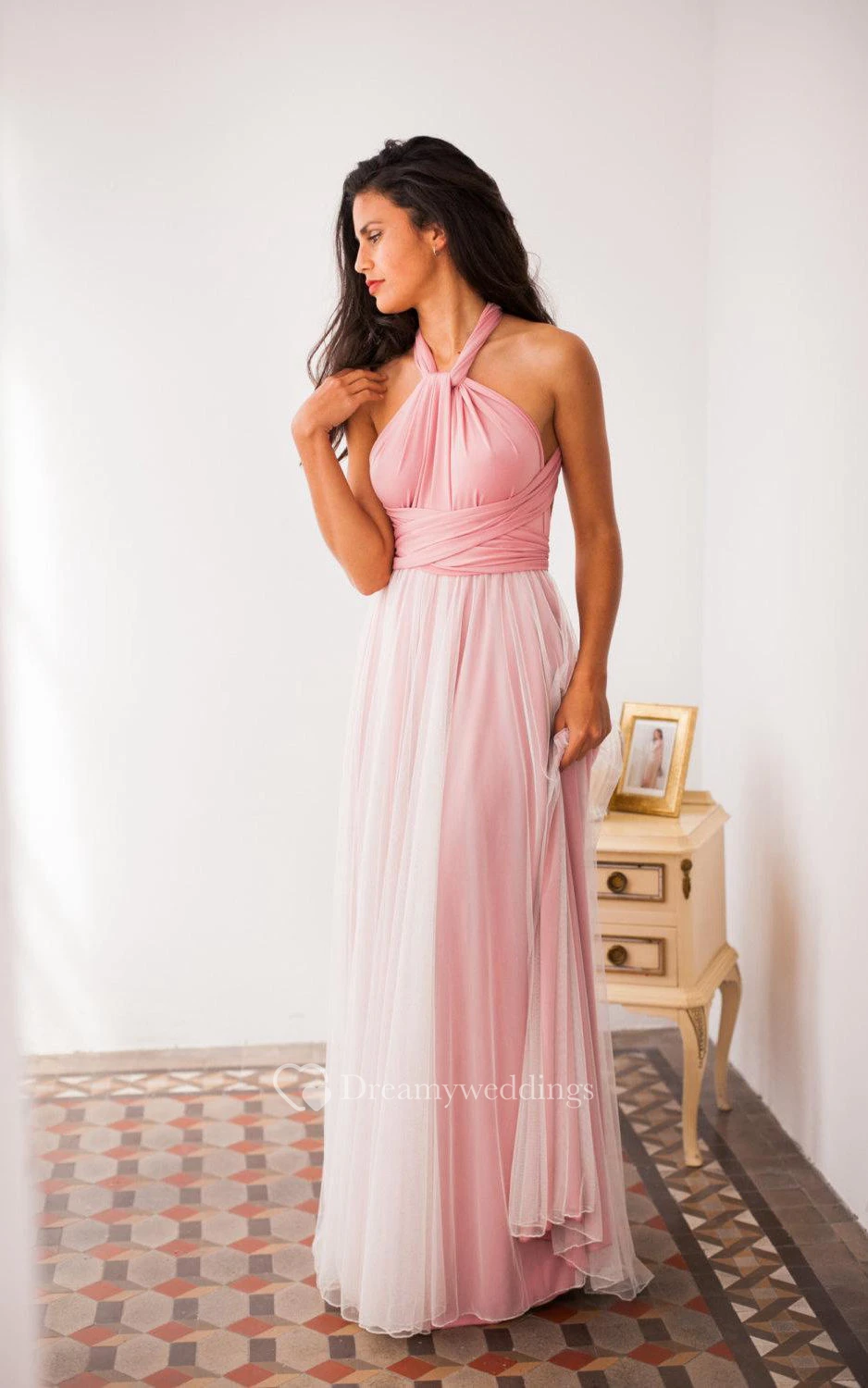 High Neck A-line Pleated Chiffon Floor Length Dress With BAndage