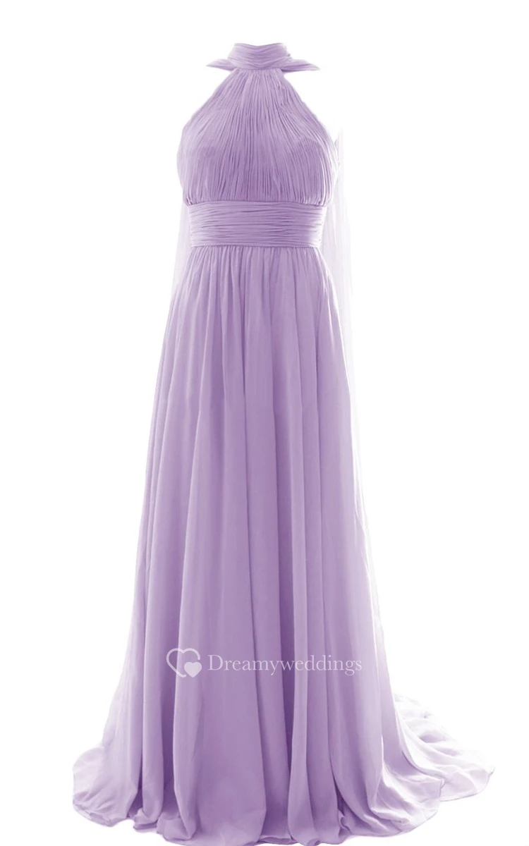 High Neck Drapped A-line Gown With Keyhole Back