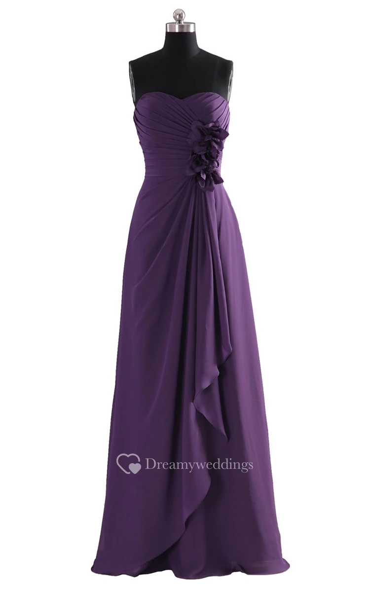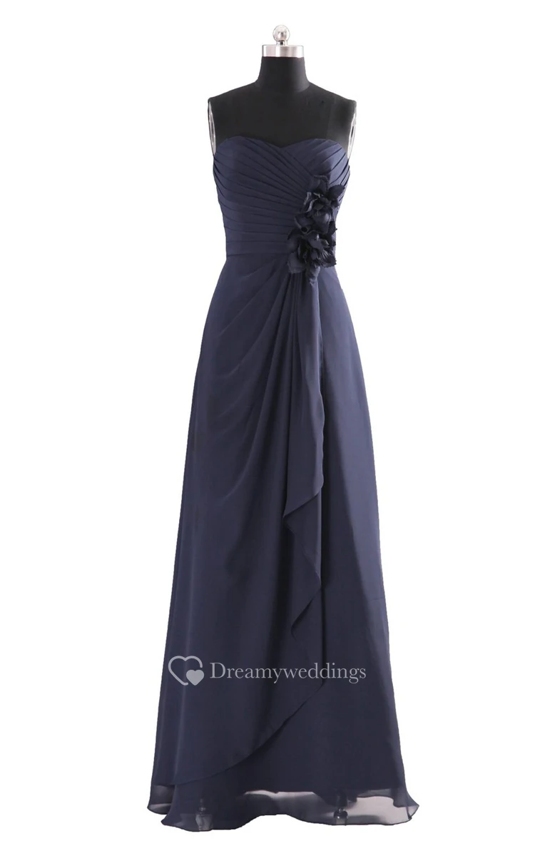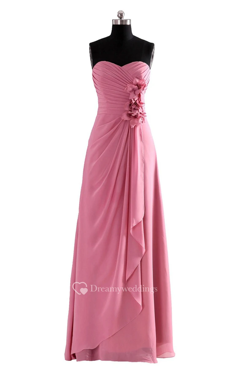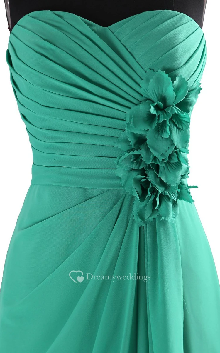 High-neck Drapping Bridal Dress With 3-D Flower