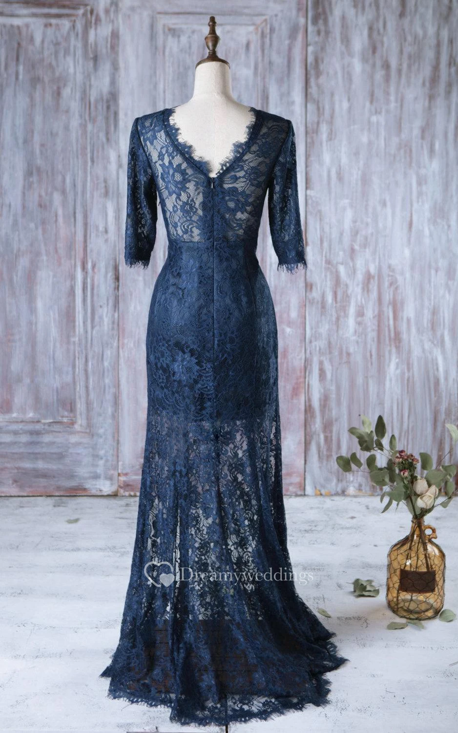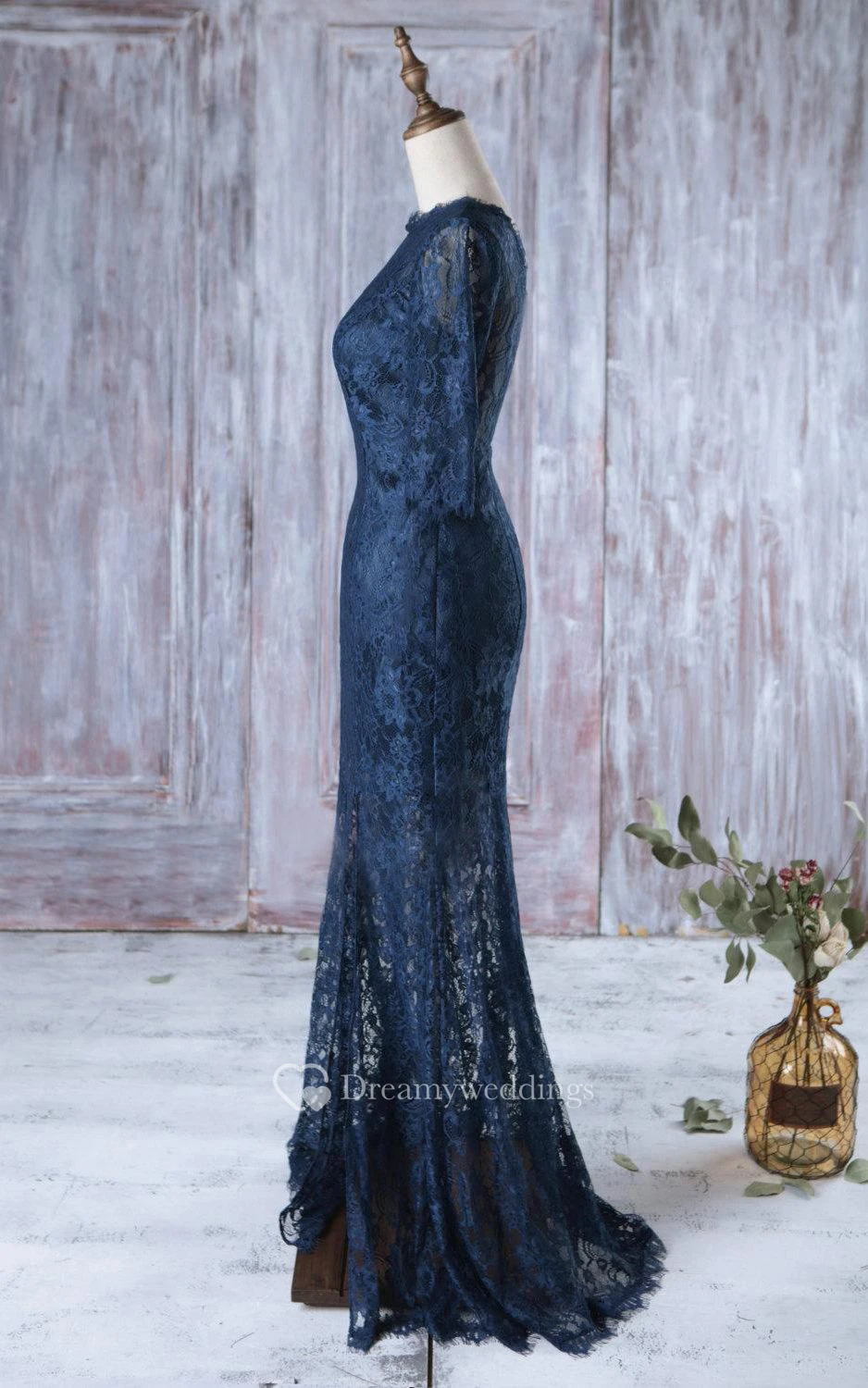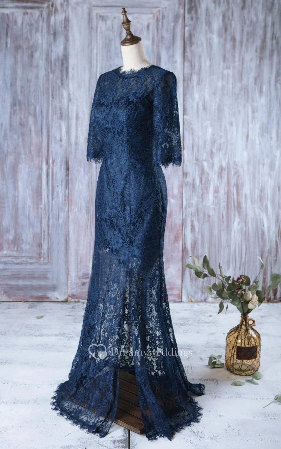 High Neck Half Sleeve Mermaid Lace Long Dress Illusion Skirt