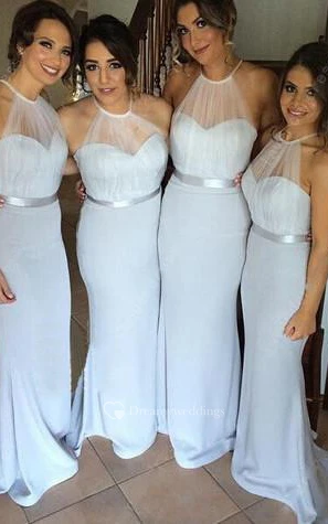 High Neck Long Mermaid Chiffon Dress with Illusion Style