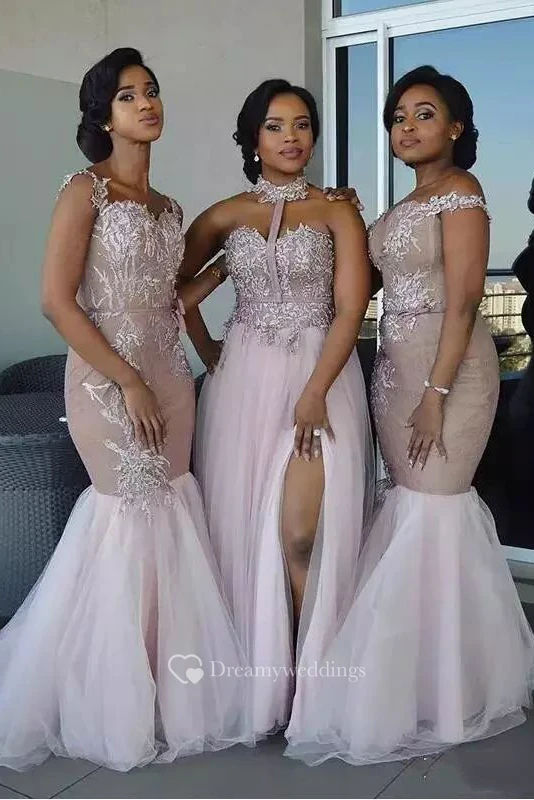 High Neck Off-the-shoulder Straps Cap Short Sleeve Floor-length Lace Tulle Mermaid A-Line Dress